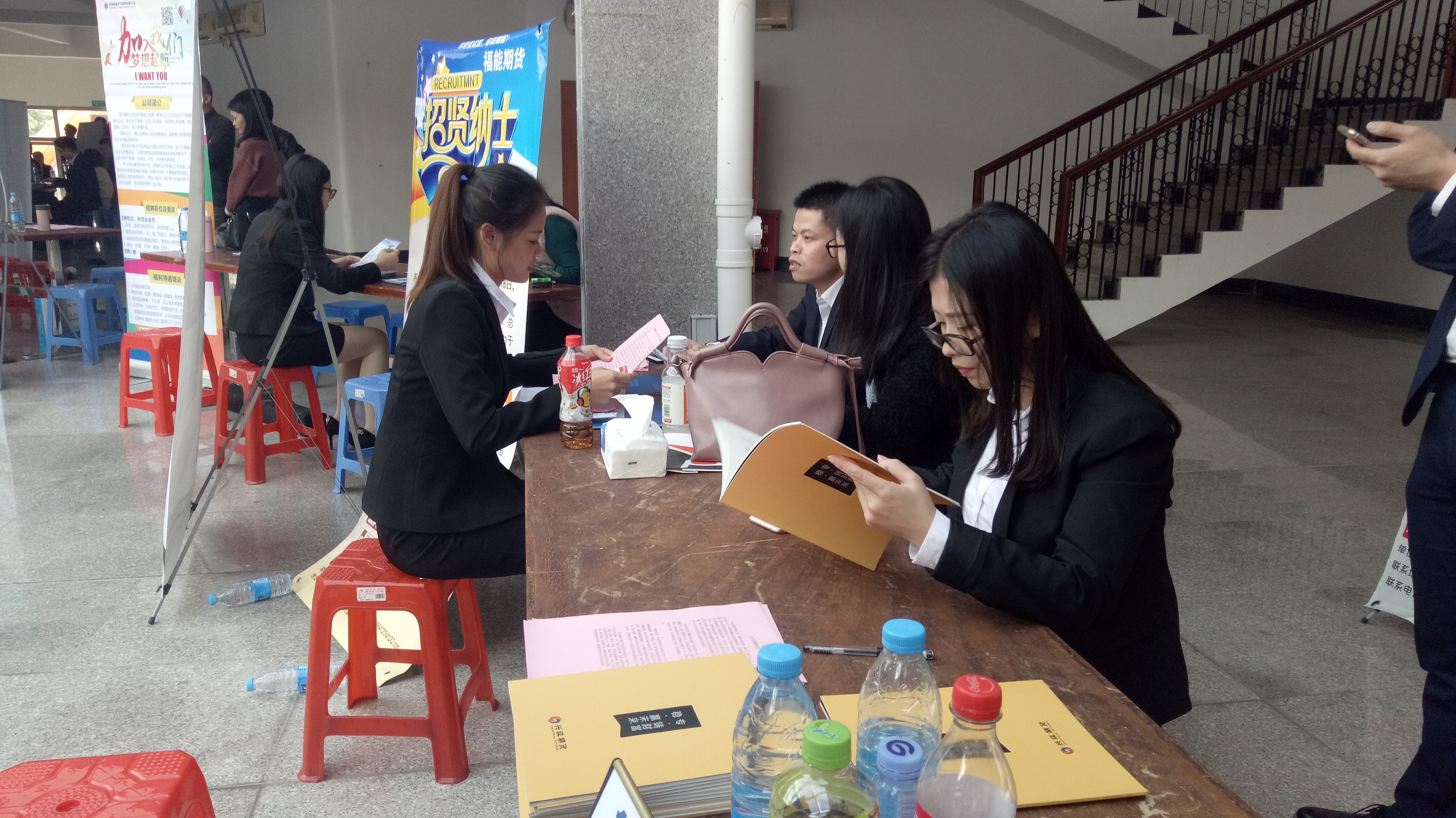 (图为应聘者正在了解公司情况)