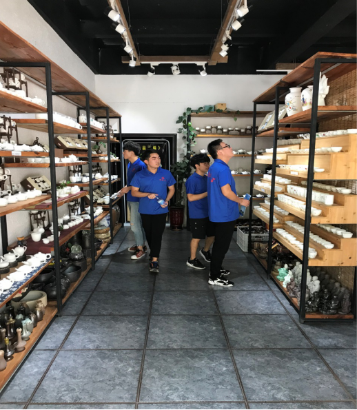 上午,实践队一行人参观了极富“瓷香”特色的陶瓷街,据当地人介绍陶瓷街是德化的窗口形象。随后,实践队来到了陶瓷博物馆,博物馆一楼三个展厅有固定陈列《德化陶瓷史话》,该陈列以历史发展为主线,比较系统地表现德化县古今瓷器的发展面貌和伟大成就,分为“水土宜瓷、千年窑烟”、“宋元瓷器、崭露头角”、“明代白瓷、独树一帜”、“清代青花、诗情画意”、“海丝瓷路、蜚声宇内”、“民国瓷器、承袭传统”、“瓷国明珠、百花齐放”等七个单元,展览充分展示了德化陶瓷生产工艺艺术特色、贸易状况及其人文内涵,此次参观使实践队员们充分了解德化窑的历史地位和作用,同时也领略到了瓷都人民勤劳智慧和开拓创新精神。