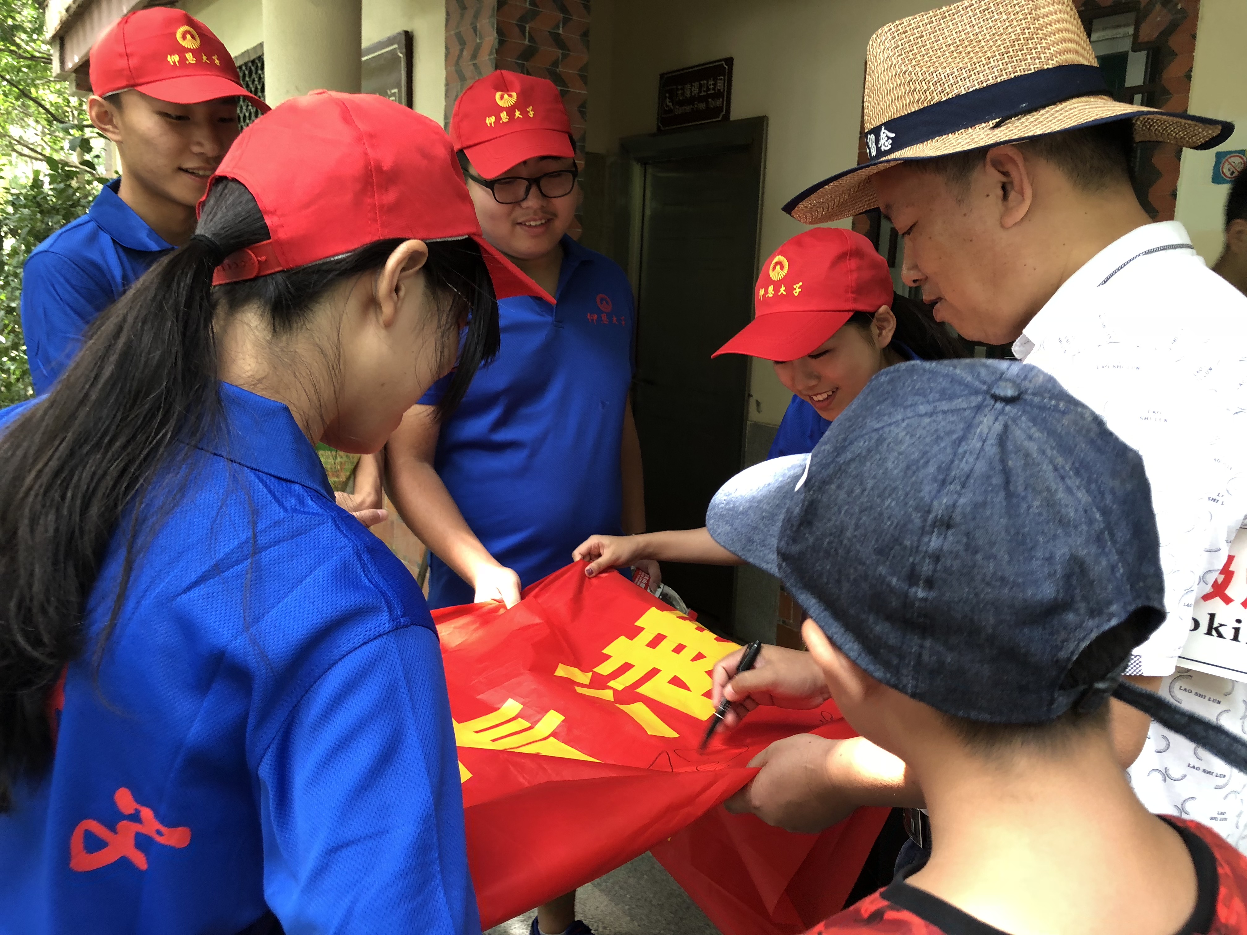 (图为市民在横幅上签字)