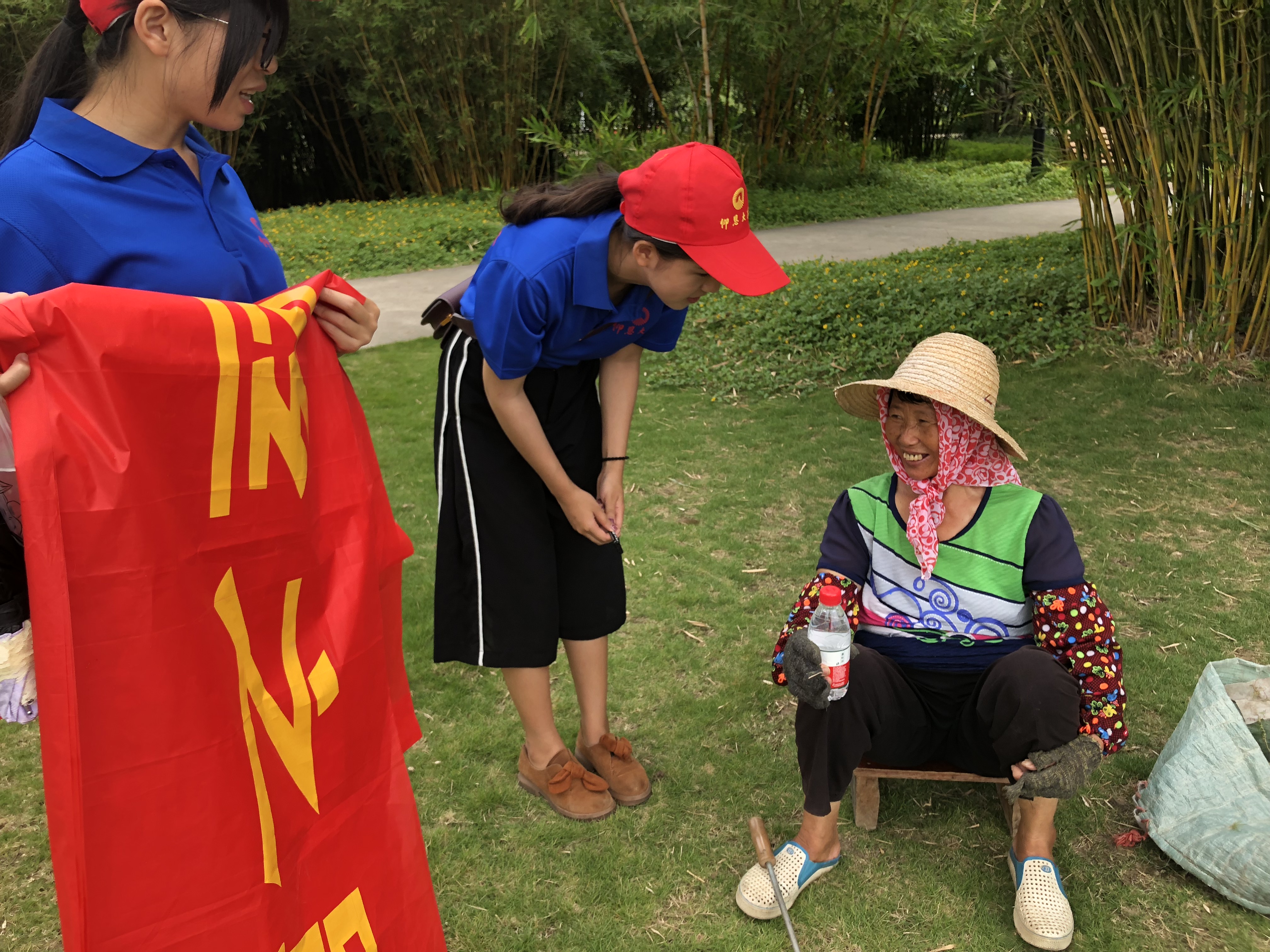 为了进一步深入开展活动,实践队兵分两队到访东湖和西湖,深度了解园内绿化人员的工作状态,实践队员撸起袖子、拿起工具,积极主动地加入绿化行列体验环卫工作,与环卫工人一同清扫园内垃圾,切身感受环卫工作不易。此外,实践队员之举感染诸多市民路人,自愿加入环卫宣传工作,于宣传横幅上签名支持。