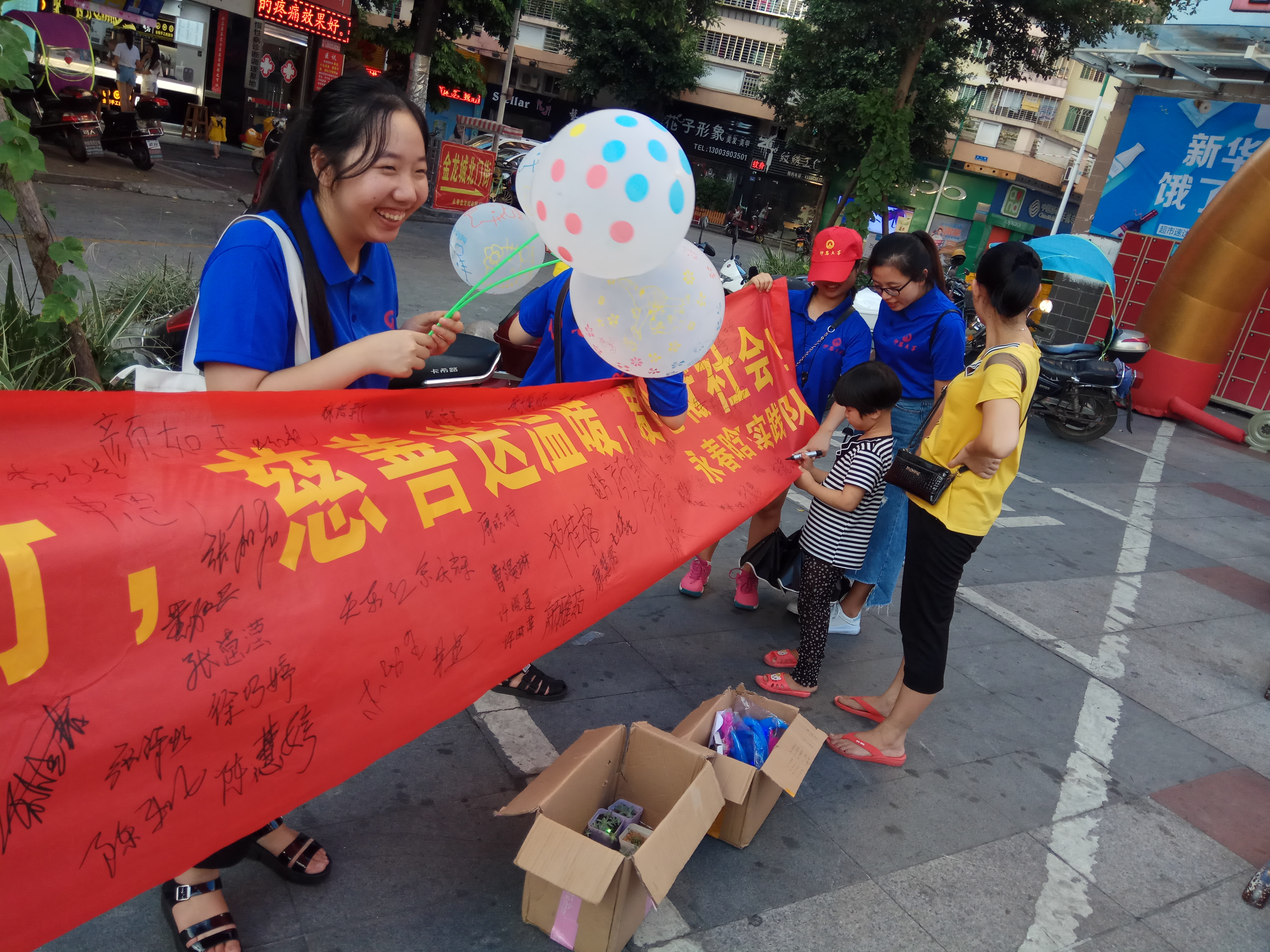 经实践队员一番准备,下午四点分别前往新华都和体育馆开展义卖活动,队员们积极宣传此次活动,奋力的吆喝尽量收到更多爱心基金,让每位爱心人士在活动横幅上签下姓名,爱心人士听到我们的活动目的毫不犹豫的捐献现金,更是连名都不留,献出了他的一份爱心。据统计,本次爱心义卖活动共筹集682元。活动结束后,队员们秉承着从一而终的责任心,进行了善后工作,为本次活动画上了圆满的句号。
