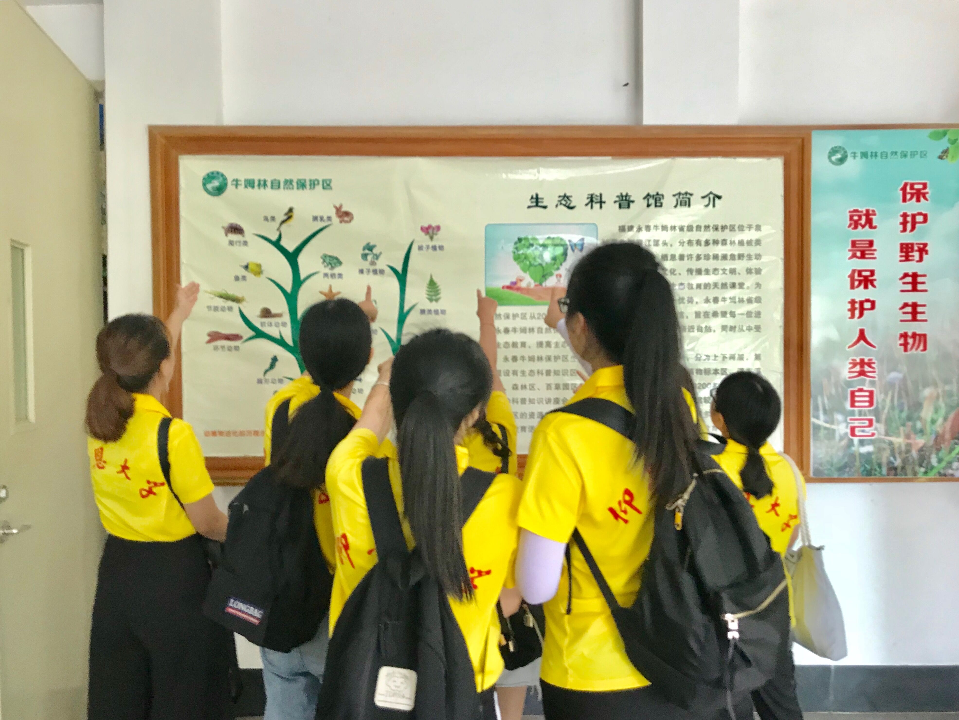 调研期间,实践队员们与指导老师赖桂全参观走访了永春牛姆林保护区生态科普馆、各旅游景点、各娱乐项目设施等地。生态科普馆的实地走访,让实践队员全方位接触自然亲近自然、提高保护生态文明意识。经过前期的调研准备和实地走访考察,队员们充分储备牛姆林园攻略知识,主动担任“爱心导游”,带领游客参观猴园,瀑布,蘑菇亭等特色景区,热情宣传永春生态旅游文化,与游客们针对永春牛姆林景区保护生物多样性等问题进行深入交流。