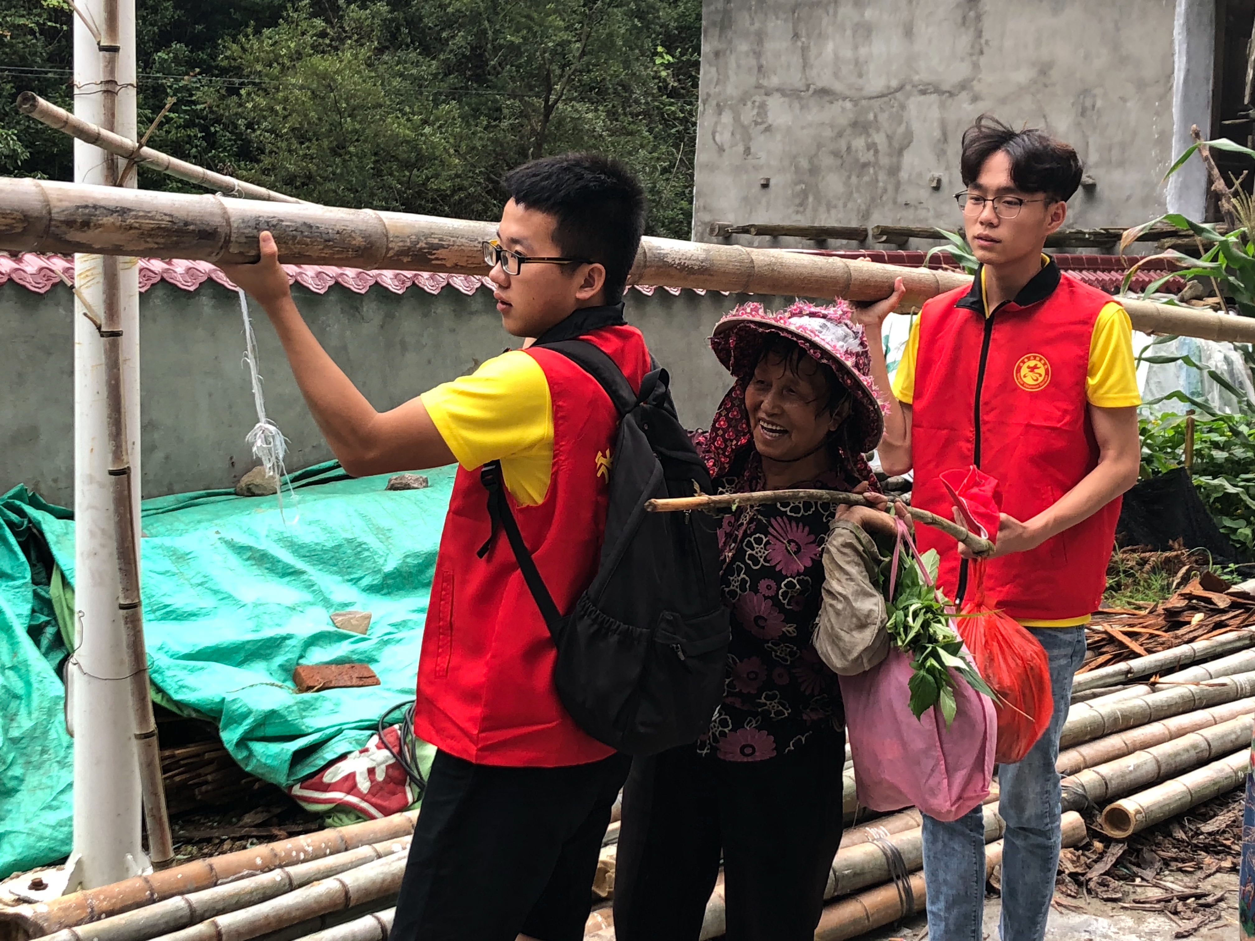 (图为实践队队员帮老奶奶扛竹子)