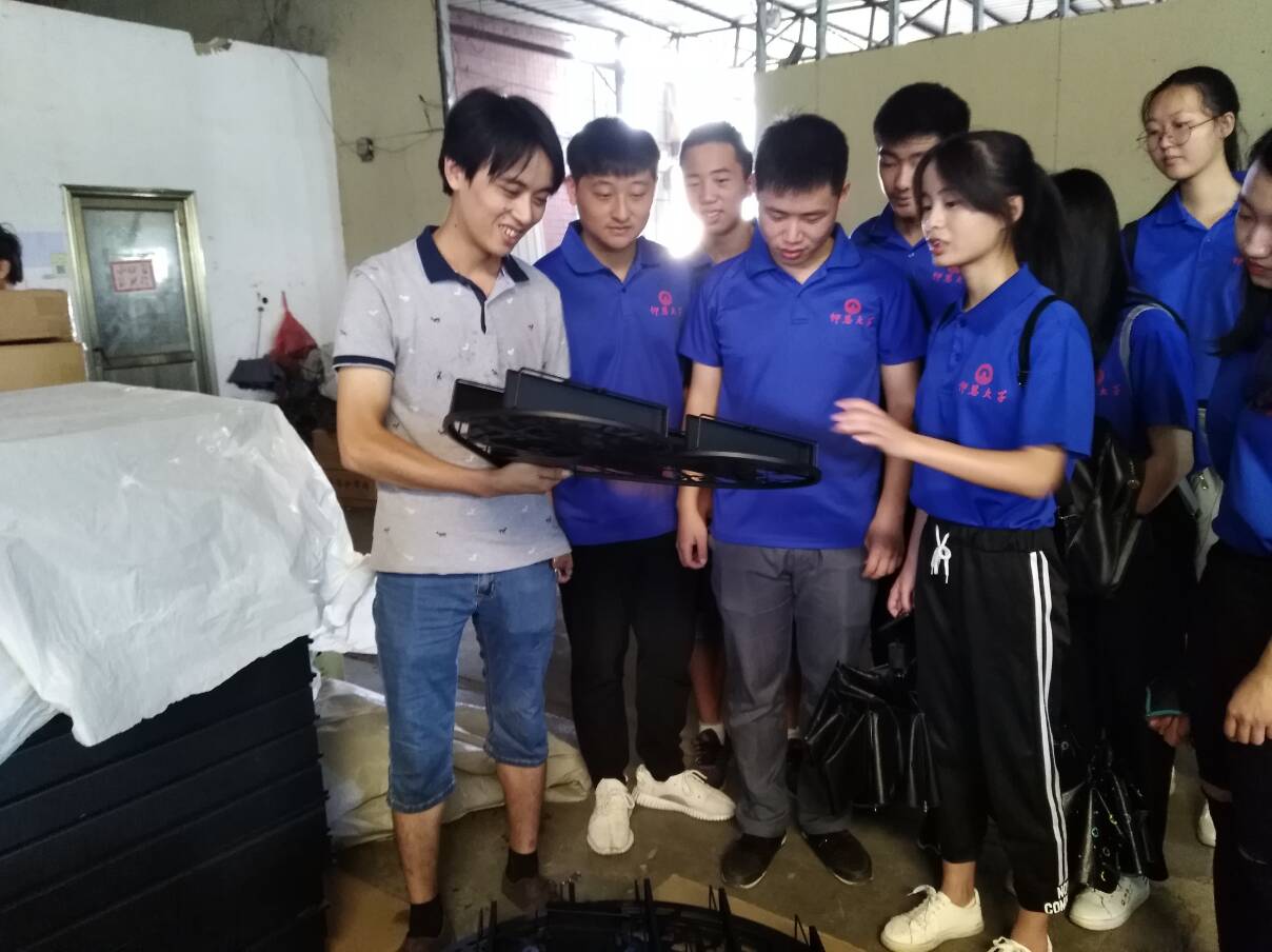 在同美工业城,实践队员们了解到,安溪县是全国藤铁工艺品最大的生产出口基地,曾被国家农业部授予“中国藤铁工艺之乡”称号。藤铁工艺业不仅是安溪最大的出口创汇产业,更是安溪的民生产业。相关负责人向实践队员们介绍了安溪的工匠们将新技术、新材料,巧妙运用到传统工艺品生产中的秘诀所在,并带领实践队员们参观了藤铁工艺品展示区,队员们无不惊叹藤铁工艺带来的视觉享受。