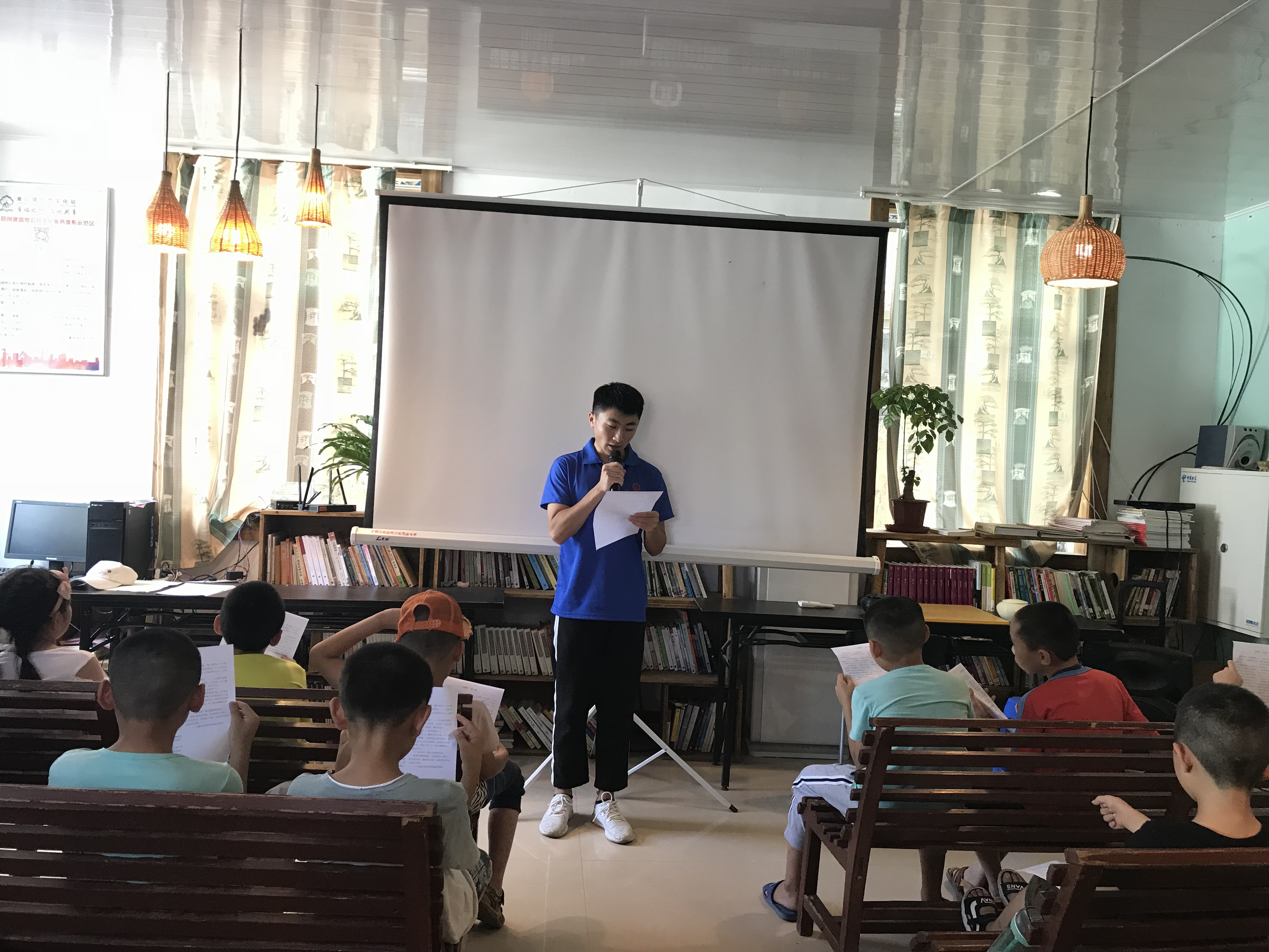 爱心支教 灼灼其华 ——米兰milan官方网站飞虎暑期社会实践队为夏令营的小学生们的朗诵与合唱彩排做准备