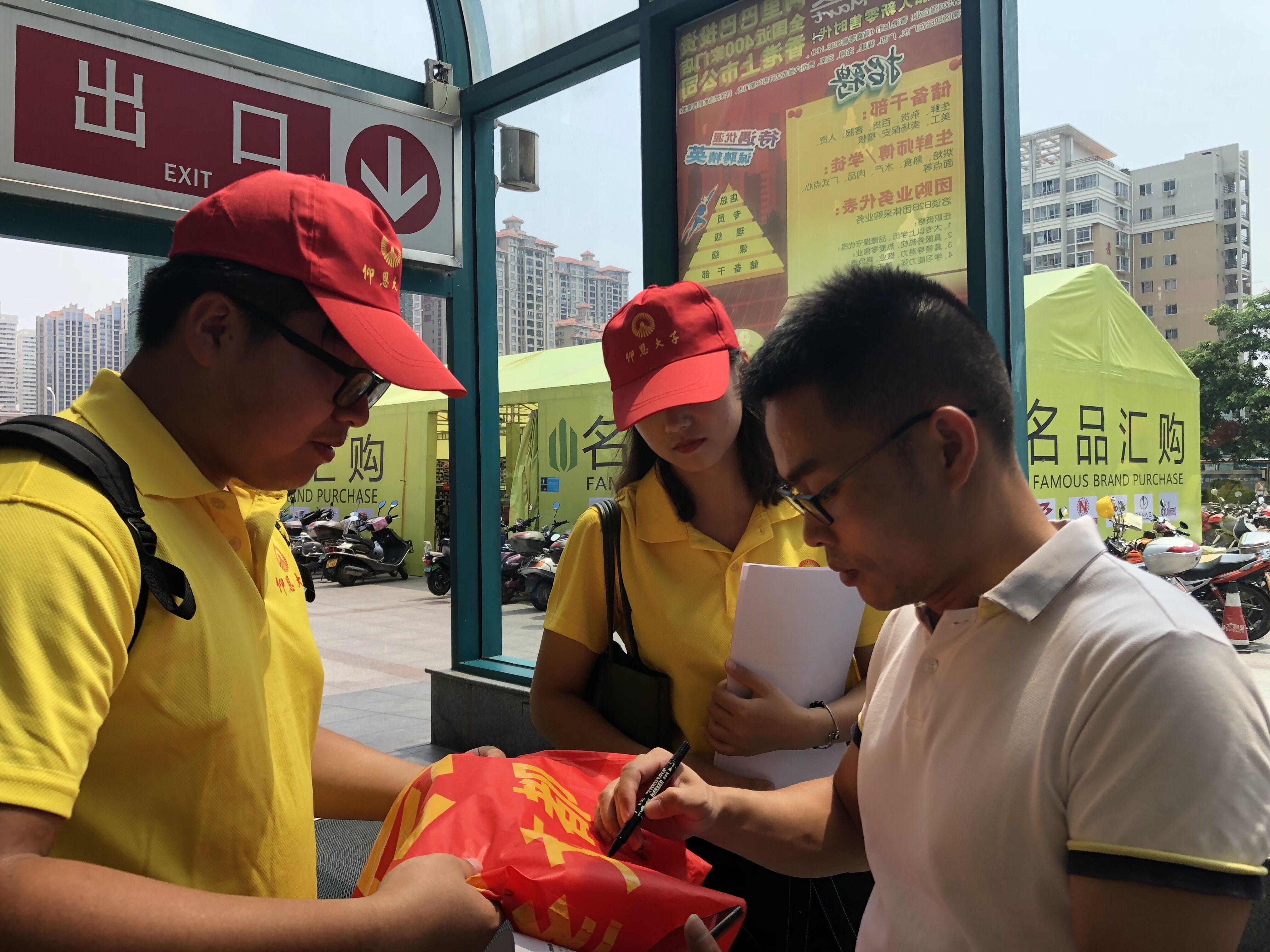 早上九点,实践队在洛江法院学习一系列反洗钱和移动支付安全的知识,实践队员了解到非法集资、电信诈骗、银行卡盗刷等常见的手段及其风险,进一步整合普法宣传内容。整理材料完毕,实践队员前往居然之家商场,在广场前设点进行普法宣传。本次活动由吴法官担任法律顾问,各位队员负责向路人发放有关反洗钱和移动支付安全知识的宣传资料,不少有困惑的路人向吴法官提出问题,吴法官进一步深入普及金融安全法律、解答民众疑惑。队员们更邀请行人在横幅上签名,让更多市民加入到知法懂法的行列中。