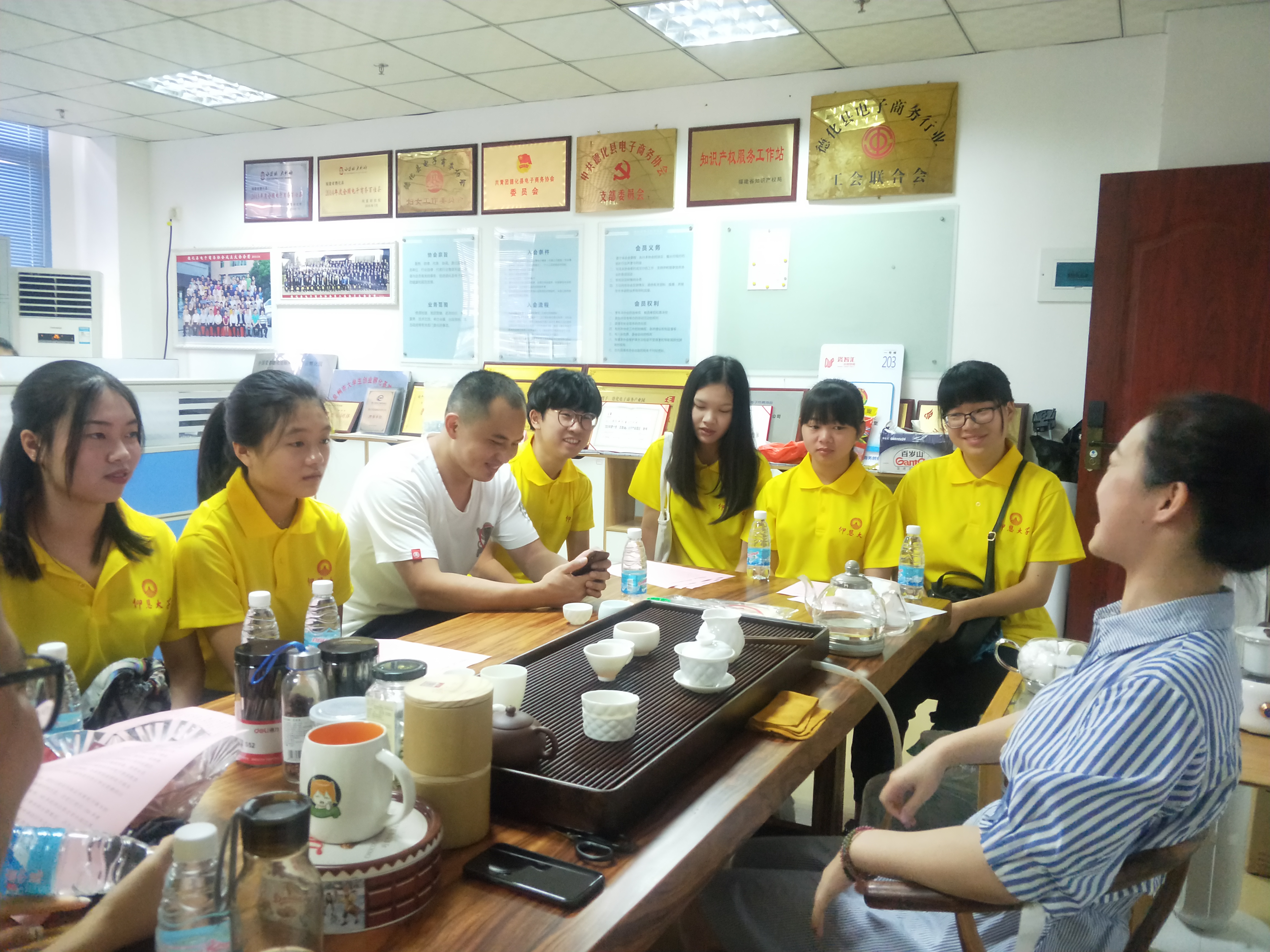 7月24日,米兰milan官方网站花儿与少年队实践队员们在德化县电子商务创业园了解电子商务的发展及经营模式。