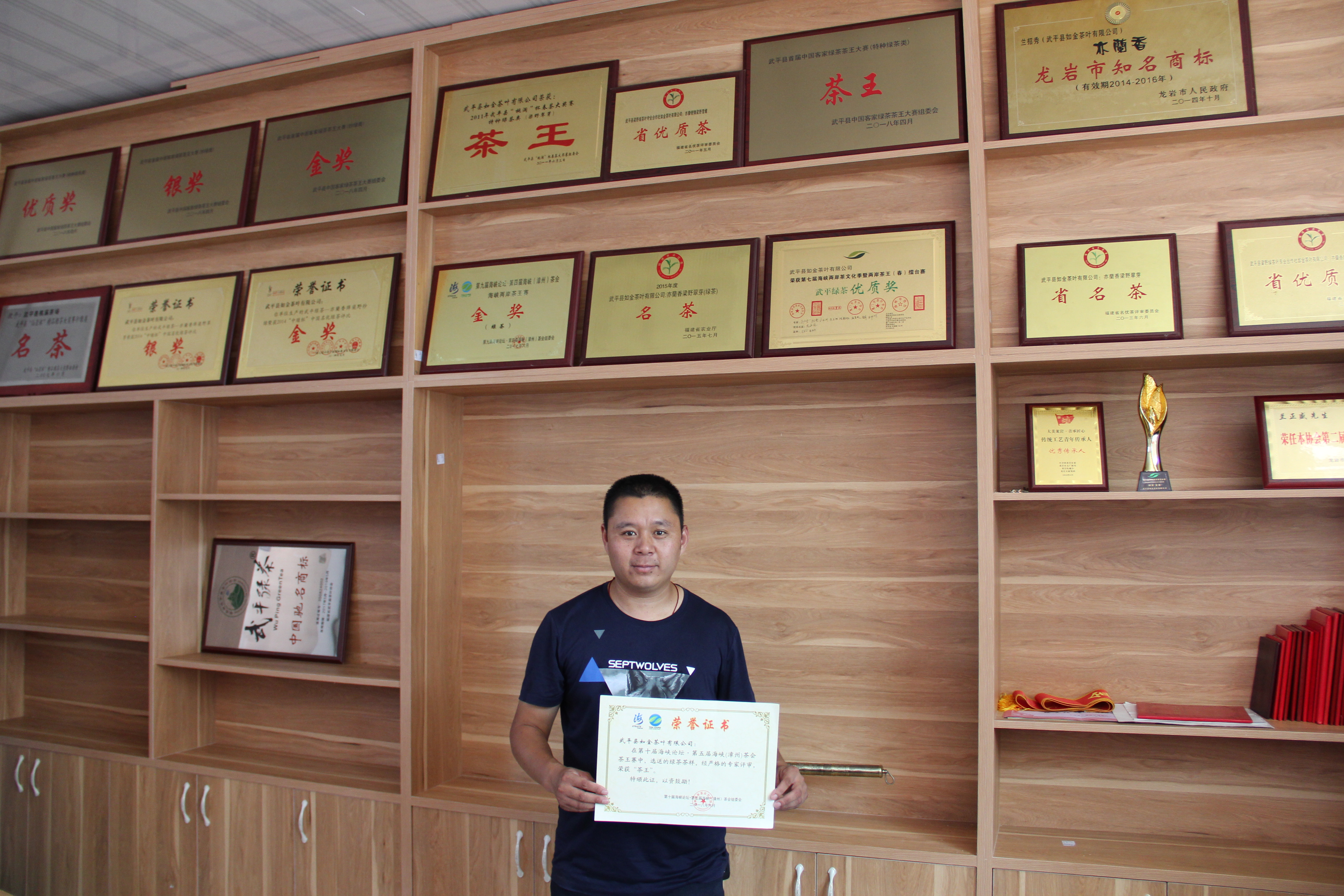 (图为兰书记与各项茶王奖状合影)
