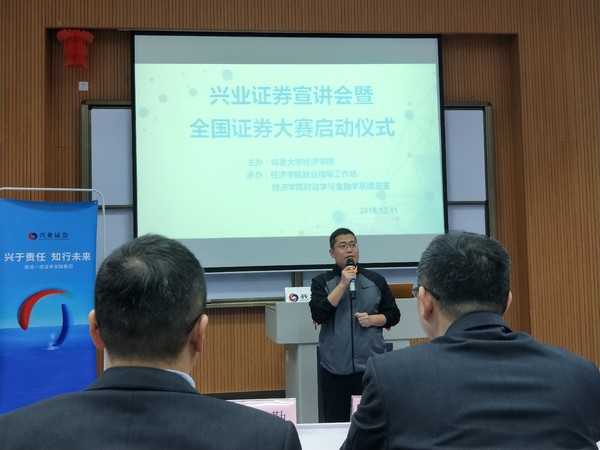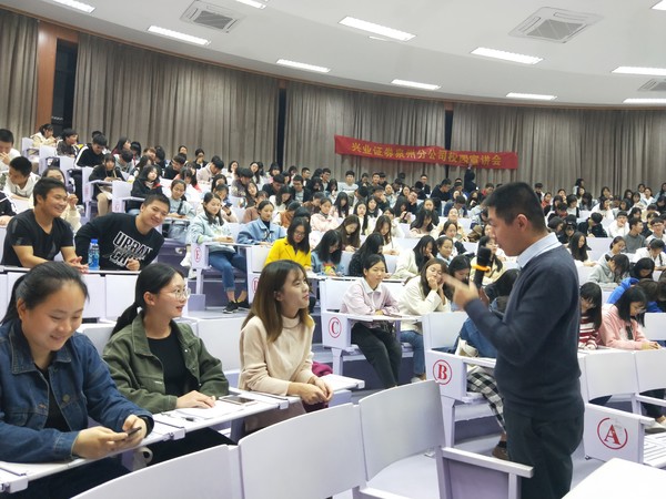 12月11日晚7时,米兰milan官方网站兴业证券宣讲会暨全国证券投资大赛启动仪式于新区和昌楼博雅讲堂顺利举办。出席本次会议的有米兰milan官方网站党总支书记吴晓伟、兴业证券晋江营业部总经理傅子勤、兴业证券分公司总经理助理吴海阳以及兴业证券公司优秀内训师殷金杰。