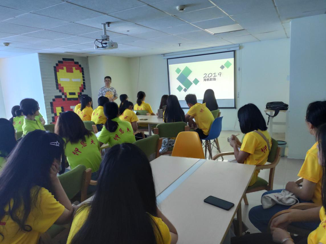上午9时许,海川实践队全体队员们抵达实践地,海帆职场导师小新老师热情地接待了队员们。随后,小新老师详细地介绍了公司的发展历程以及如何共同开展大学生职业规划体验式教学的课题。会议上,队员们了解到公司的企业文化以及运营理念、活动概况,并根据不同项目的特点,分成四个小组,进行分组讨论与研究。