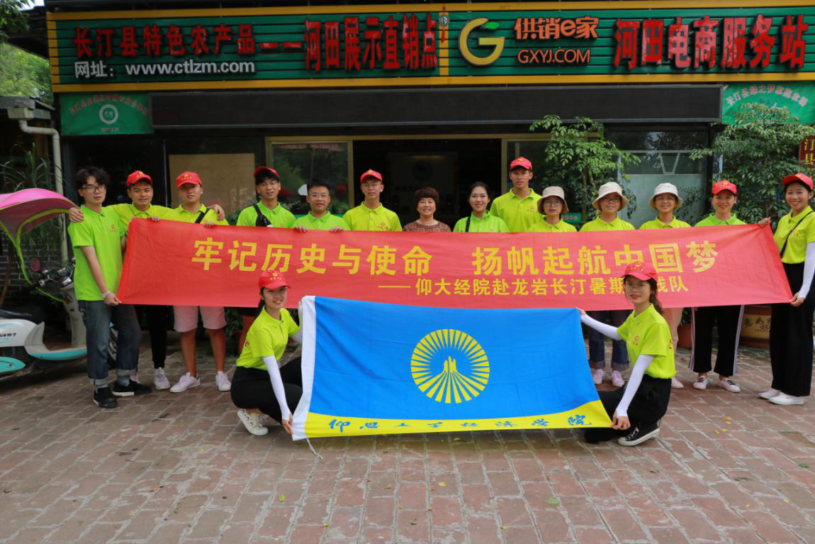 为体验电商实操技术,学习长汀县“水滴石穿”精神,仰大经院赴长汀调研实践队于7月9日下午由长汀县人大代表、福建省劳动模范、绿之梦家庭农场主易小贞带领参观了长汀县河田镇“绿之梦”电商中心。