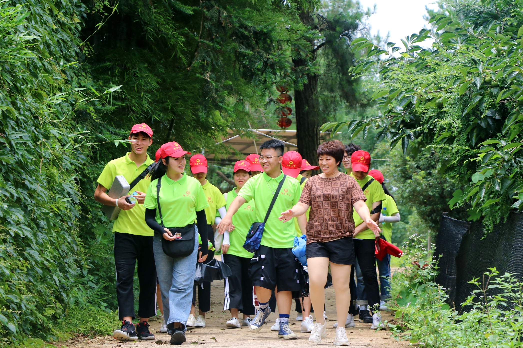 (图为参观农场) 易女士向队员们讲解了各类植物、农产品的名字及特征,提高了队员对园林绿化的认识。农场通过种植观光农业、亲子植树教育、农村电子商务来带动各个功能区的互动,提高各个功能区的人气指数,形成立体循环营销促动模式,实现农场多元化经营创新发展模式。通过观光采摘活动来带动各乡镇计生种植户参与劳动创业,实现家庭经济增长,真正实现“让绿色赶走贫穷,让每一寸土地种出黄金”。