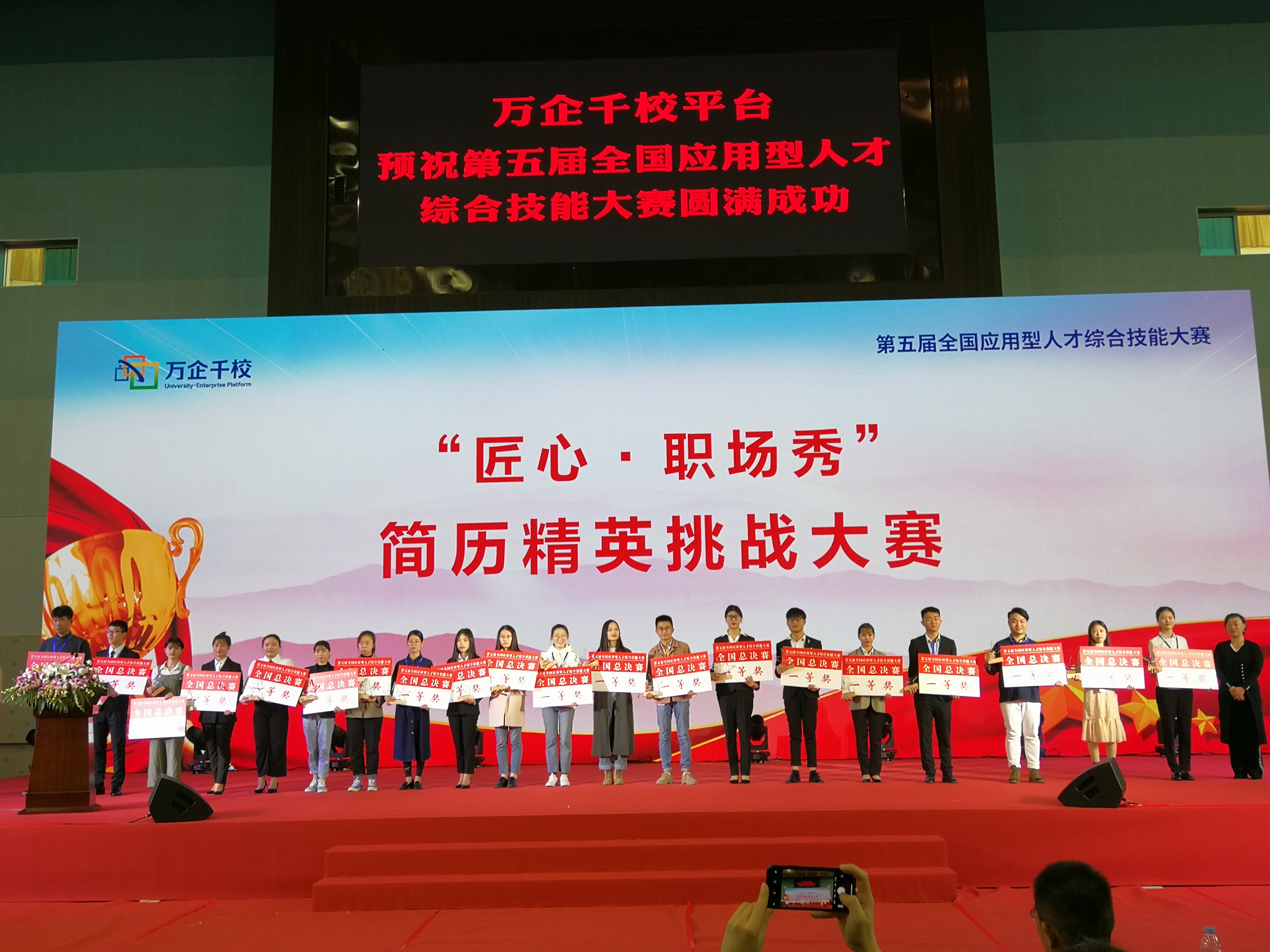 (图为颁奖典礼现场) 第五届全国应用型人才综合技能大赛由中国国际经济技术合作促进会、海口市人民政府、世界职业教育大会暨展览会组委会联合主办。为米兰官网学生提供了良好的展示平台,通过大赛促进了学生就业能力素养的提升。(赖桂全/图文)