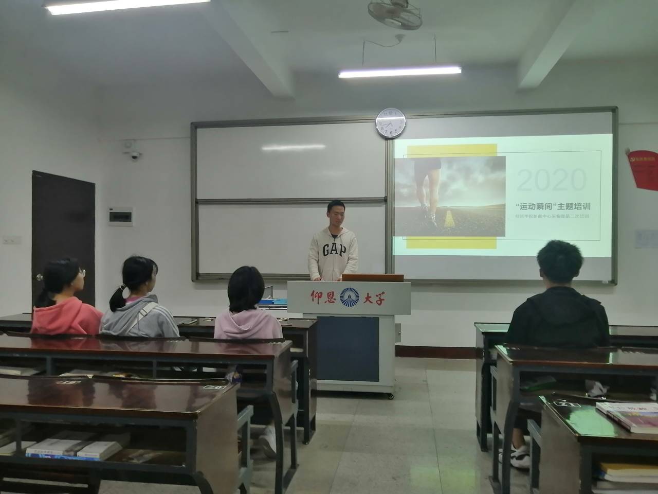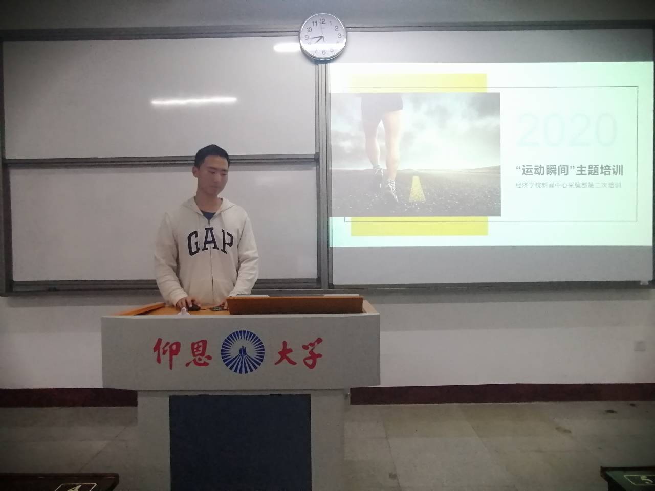 培训会上,主讲人张裕源首先介绍了摄影中常用的技巧以及摄影过程中需要注意的相关事项。随后,张裕源针对运动会期间的拍摄工作展开介绍,向同学们讲述了在各项田径运动的拍摄过程中如何用合适的角度进行拍摄,使同学们对运动类摄影有了进一步的认识。最后,张裕源邀请了王孟凤学姐进行了摄影经验的分享,向同学们介绍了相机与手机在摄影过程中的区别,并对运动会期间摄影的注意事项进行了补充说明,为提升同学们的摄影技术提出了宝贵的建议。