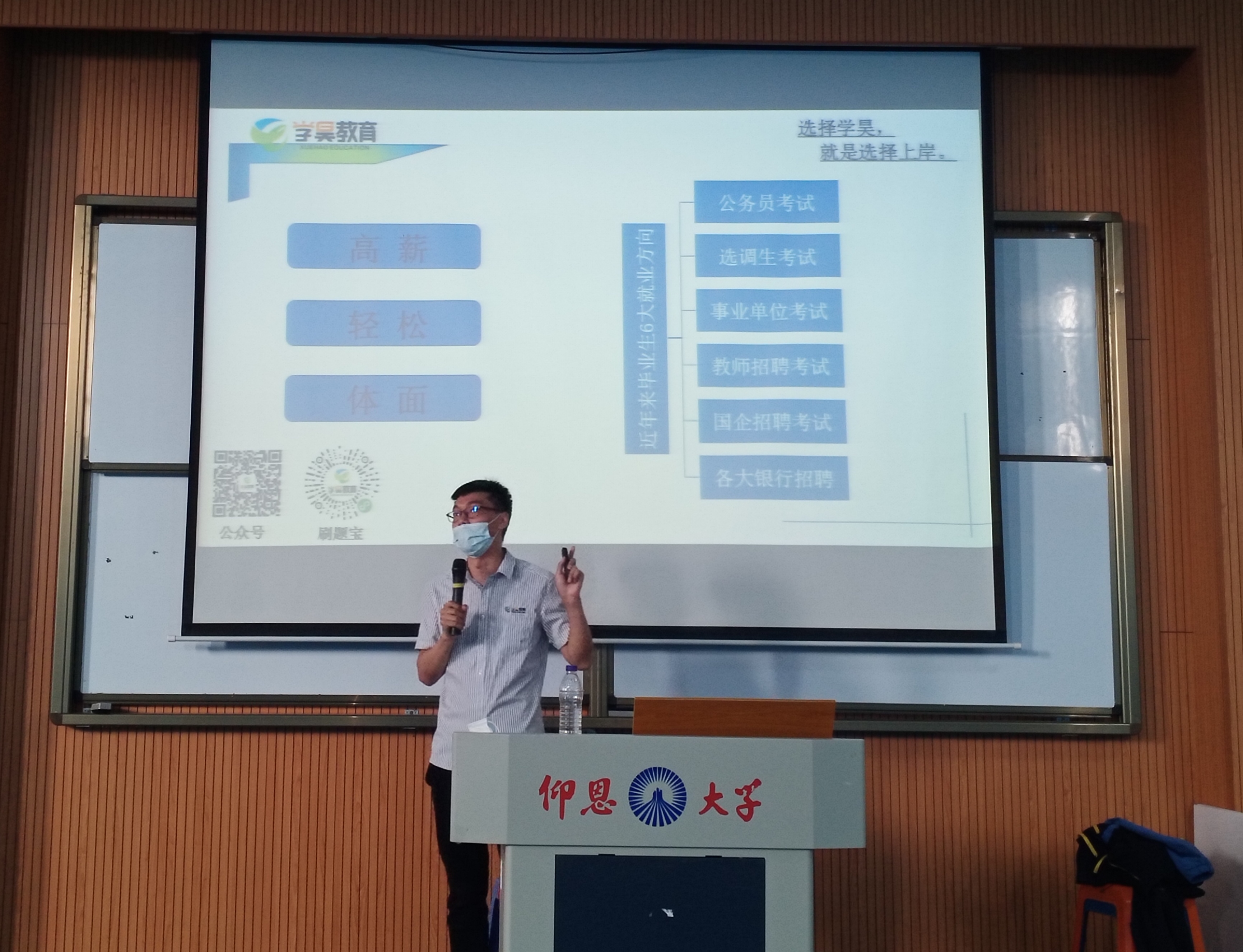 为使米兰官网学子加强应考能力,提升就业质量,2021年3月17日下午,由米兰milan官方网站承办、米兰milan官方网站就业指导工作坊协办的公职类备考讲座于新区和昌教学楼海纳讲堂开展。本次讲座由学昊教育厦门分校校长李松主讲。
