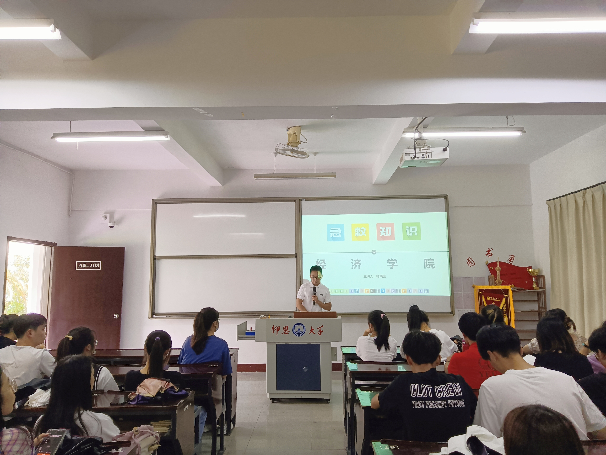 会议伊始,林晓富老师通过展示往届暑期实践视频,让大家对本次安全告知会的主题有初步的了解。随后,分别从触电急救、骨折急救、烫伤急救、中暑急救、溺水急救等方面展开,对同学们进行有关急救技能的科普,普及出行安全的相关知识。会议的最后,林晓富老师着重强调:当下新冠疫情仍在持续,每个人都要遵守疫情防控相关要求。