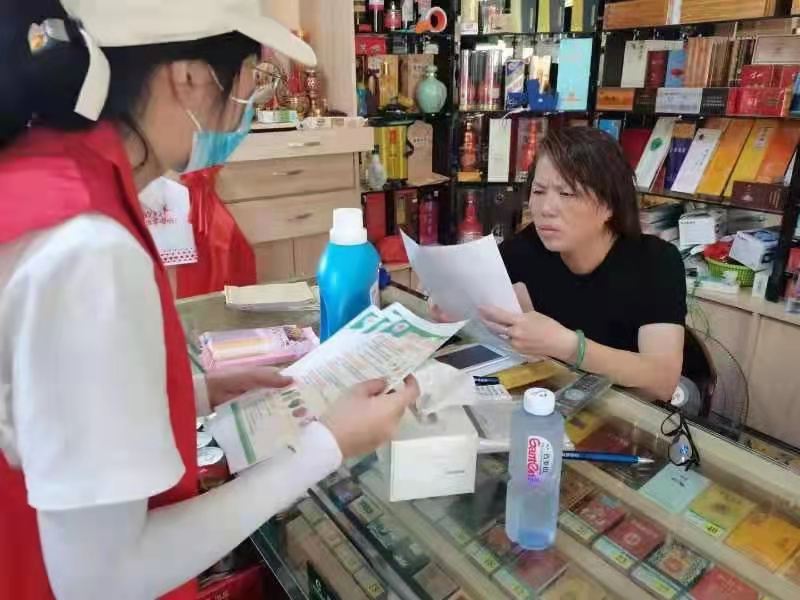 图1实践队向居民分发传单并进行宣传