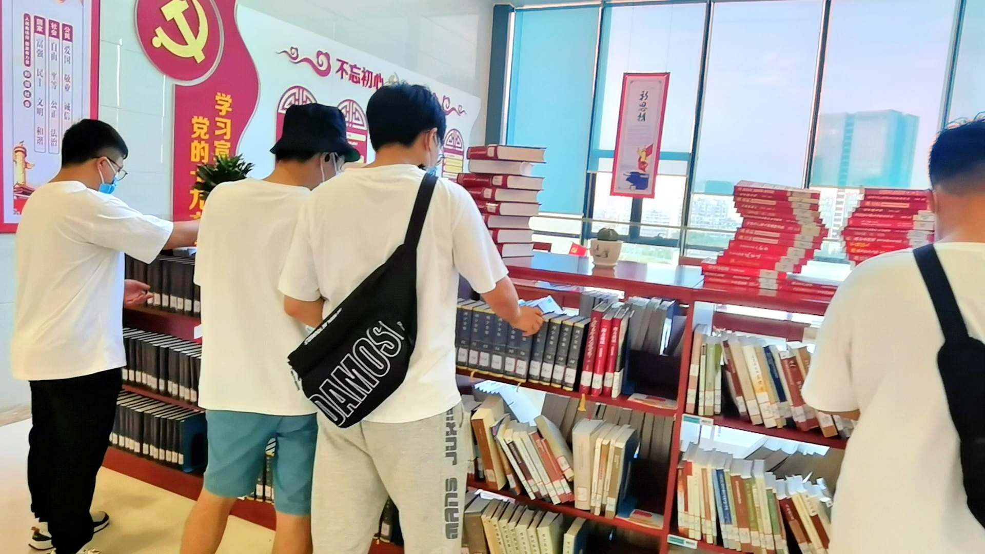 图一实践队队员精心挑选书籍