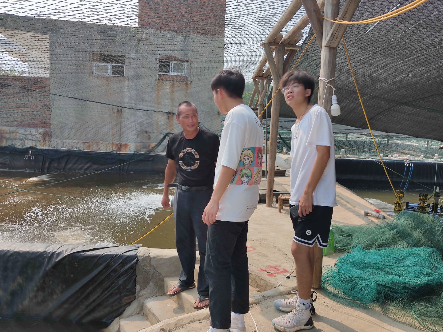 图2养殖户向实践队传授养殖经验