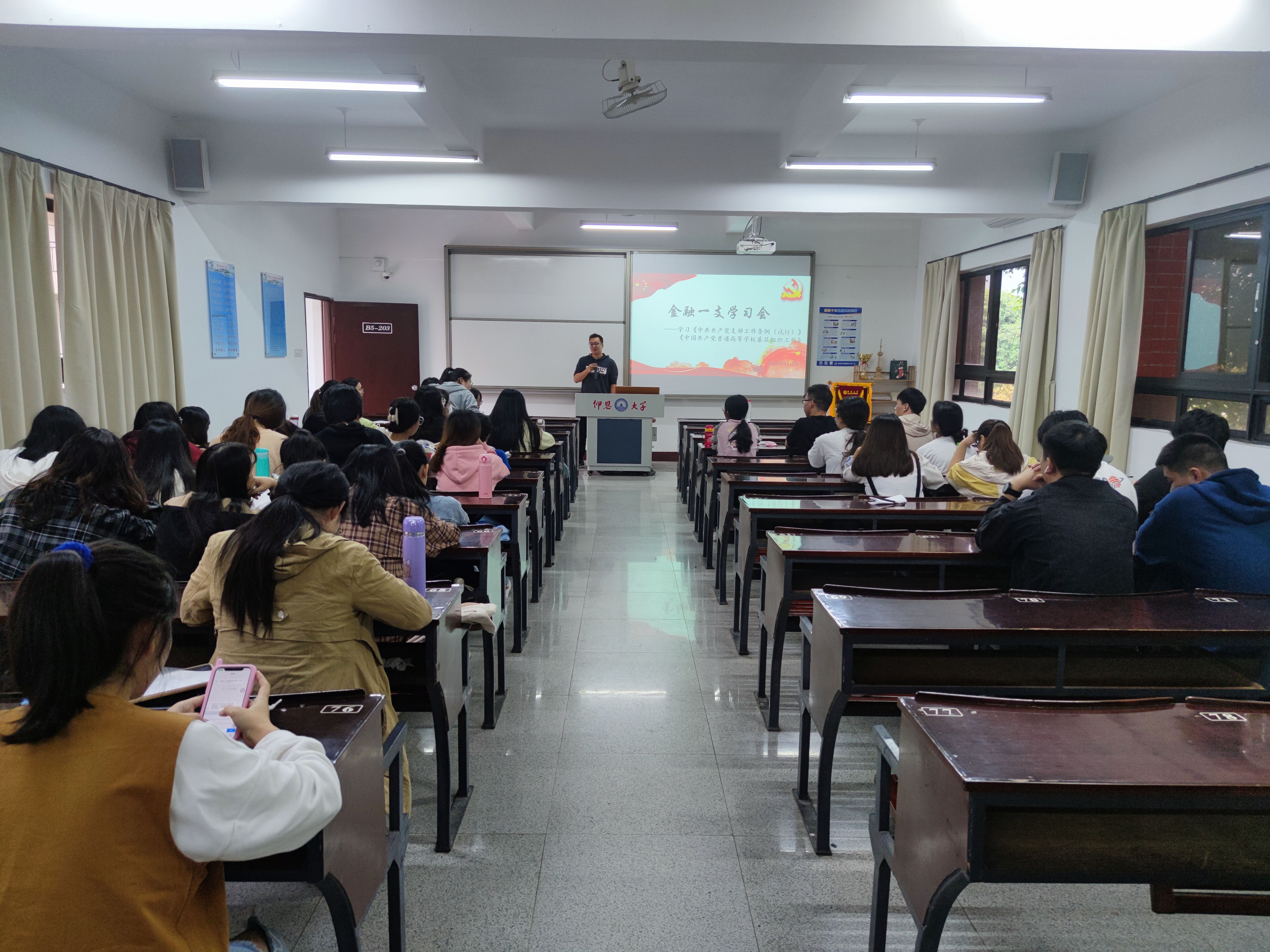 2021年11月4日下午4:00,米兰milan官方网站金融系第一党支部在仰恩楼B5-203开展《中国共产党支部工作条例(试行)》和《中国共产党普通高等学校基层组织工作条例》学习会,深入领会《条例》精神。参与人员有宣传委员詹奕椿老师、组织委员谢坤宏老师,支部全体党员以及19和20级积极分子。