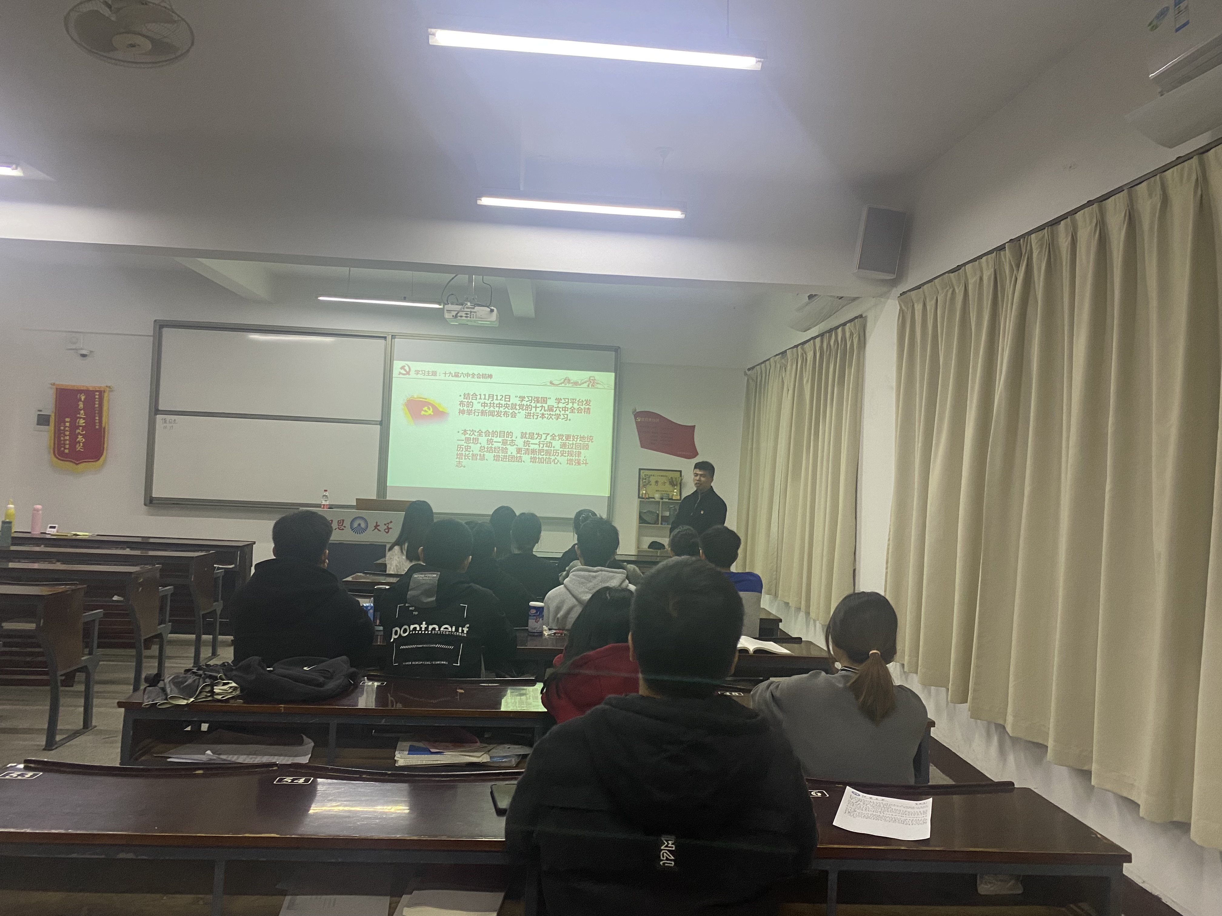 为深入学习贯穿党的十九届六中全会精神,进一步深化对全会精神的认识和理解,2021年11月22日晚,米兰milan官方网站经济系学生第二党支部于仰恩楼B4-201室开展学习“十九届六中全会精神”主题党日活动。本次活动由经济系学生第二党支部书记阙梦露主持,并邀请米兰milan官方网站副院长陆泽波老师为我们解读“十九届六中全会精神”。