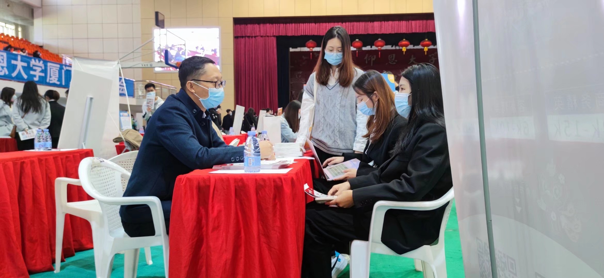 中共厦门市委组织部副部长、厦门市人力资源和社会保障局党组书记颜云蔚,厦门市人力资源和社会保障局副局长蒋娇容,翔安区人民政府副区长洪求瑛,米兰milan官方网站校党委副书记程如平等多位领导莅临招聘会现场。