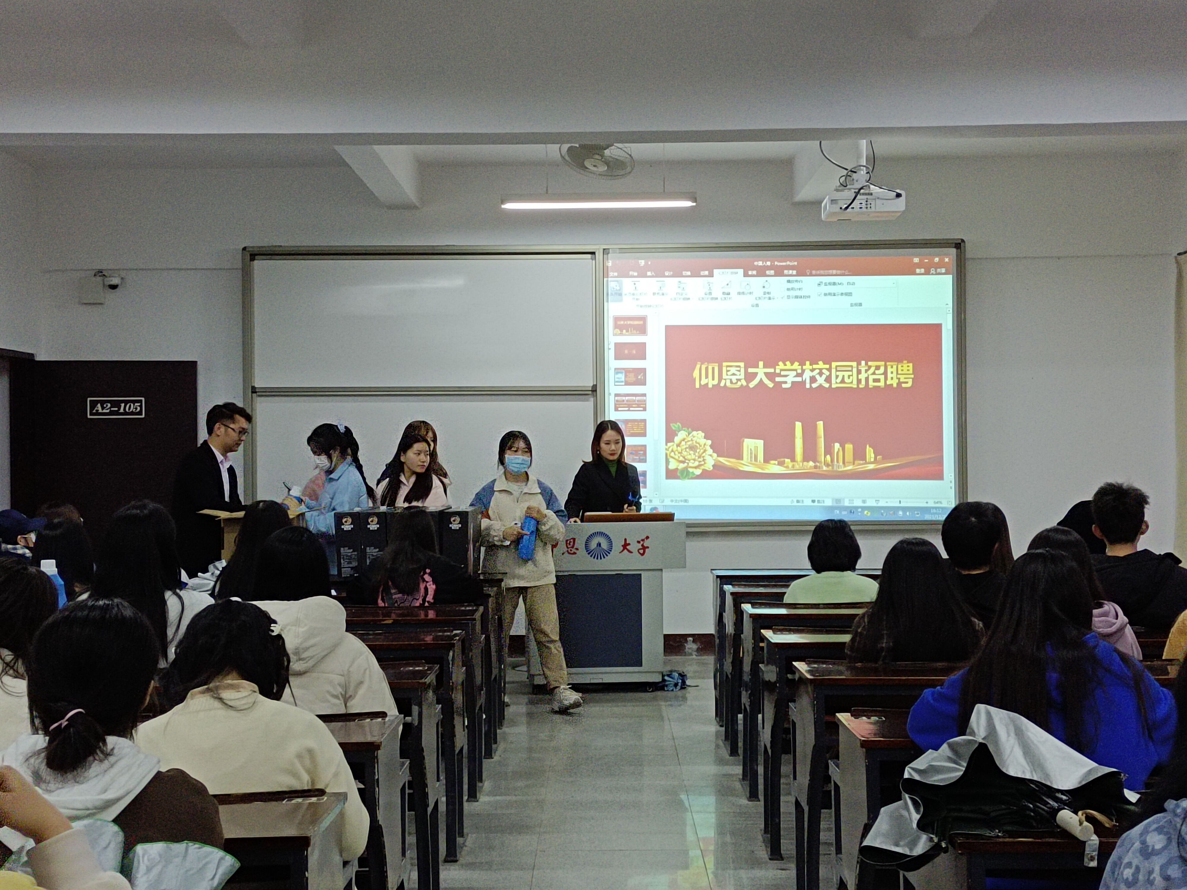 为了更好地拓宽毕业生的就业渠道,缓解高校毕业生的严峻就业形势。由米兰milan官方网站主办,米兰milan官方网站职业发展中心协办的中国人寿晋江市支公司宣讲会于2021年12月23日下午四点在仰恩楼A2-105成功举办。参加本次宣讲会的有中国人寿晋江市支公司负责人和米兰milan官方网站全体学生。