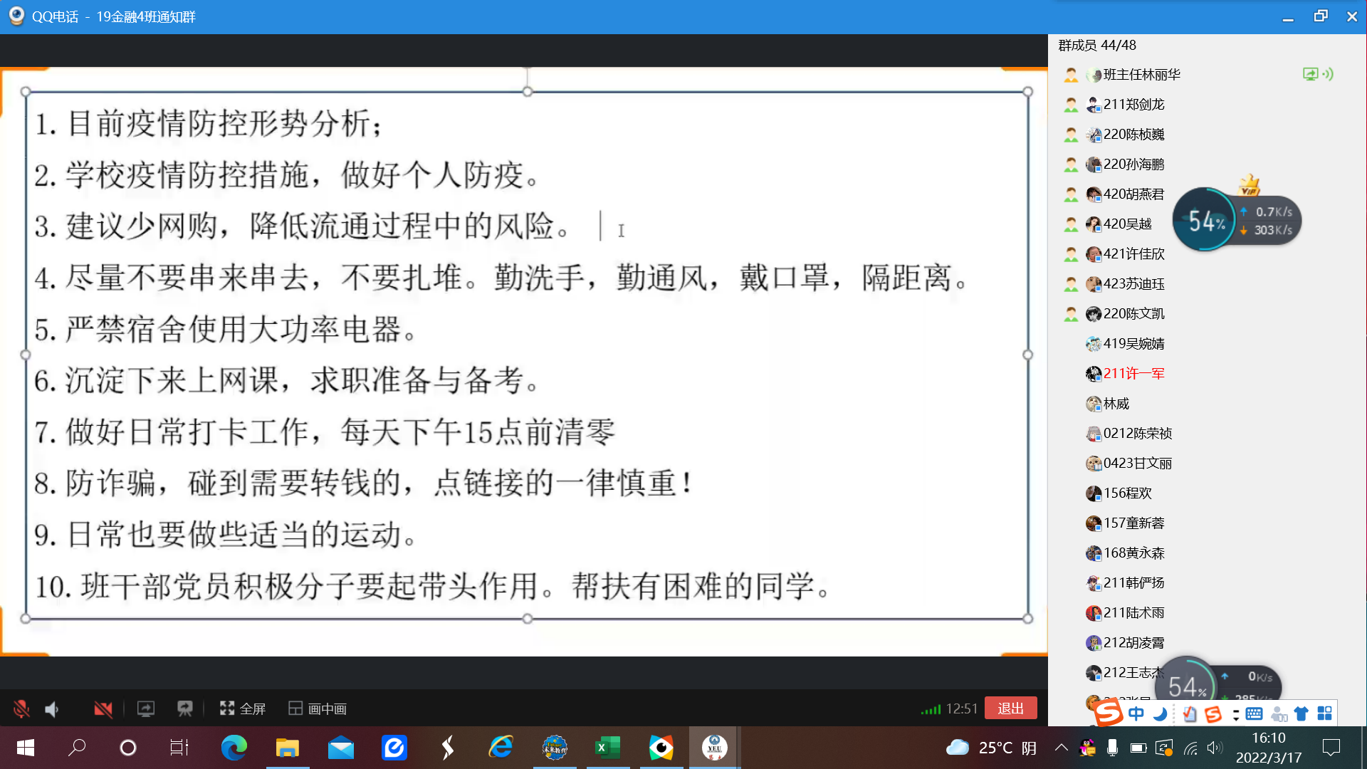 为了加强疫情防控,打赢疫情战役,切实做好校园疫情安全预防工作,全面提高全体同学对新冠疫情安全防控意识。2022年3月17日,米兰milan官方网站各班在线上召开了以“疫情防控”为主题的线上班会,米兰milan官方网站各班全体学生参加了此次班会。