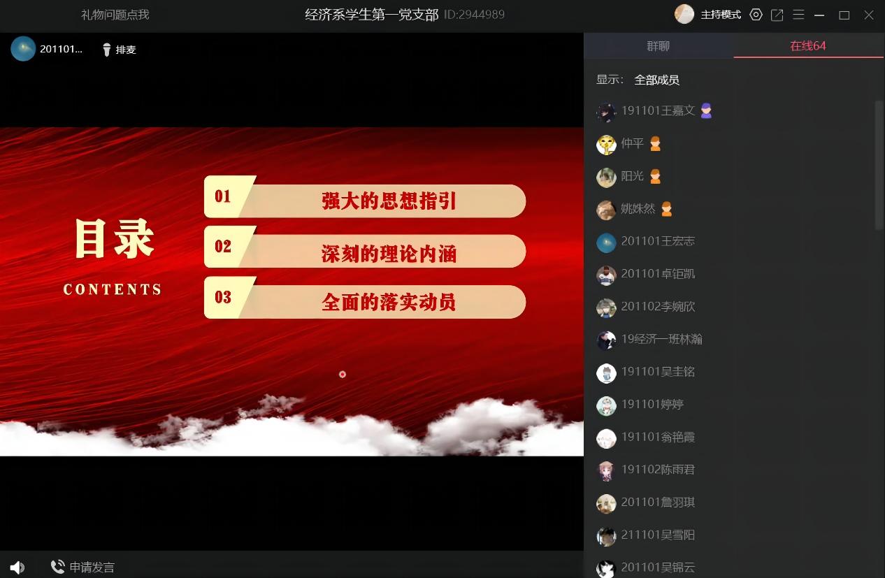 为进一步普及和全面落实“两会”精神,2022年3月24日晚上,米兰milan官方网站经济系学生第一党支部开展“学习两会精神”线上学习交流会。本次主讲人为王宏志干事,参会人员为经济系学生第一党支部书记赖桂全老师、副书记姚姝然老师、组织委员仲平老师、宣传委员杨越老师以及支部全体成员。