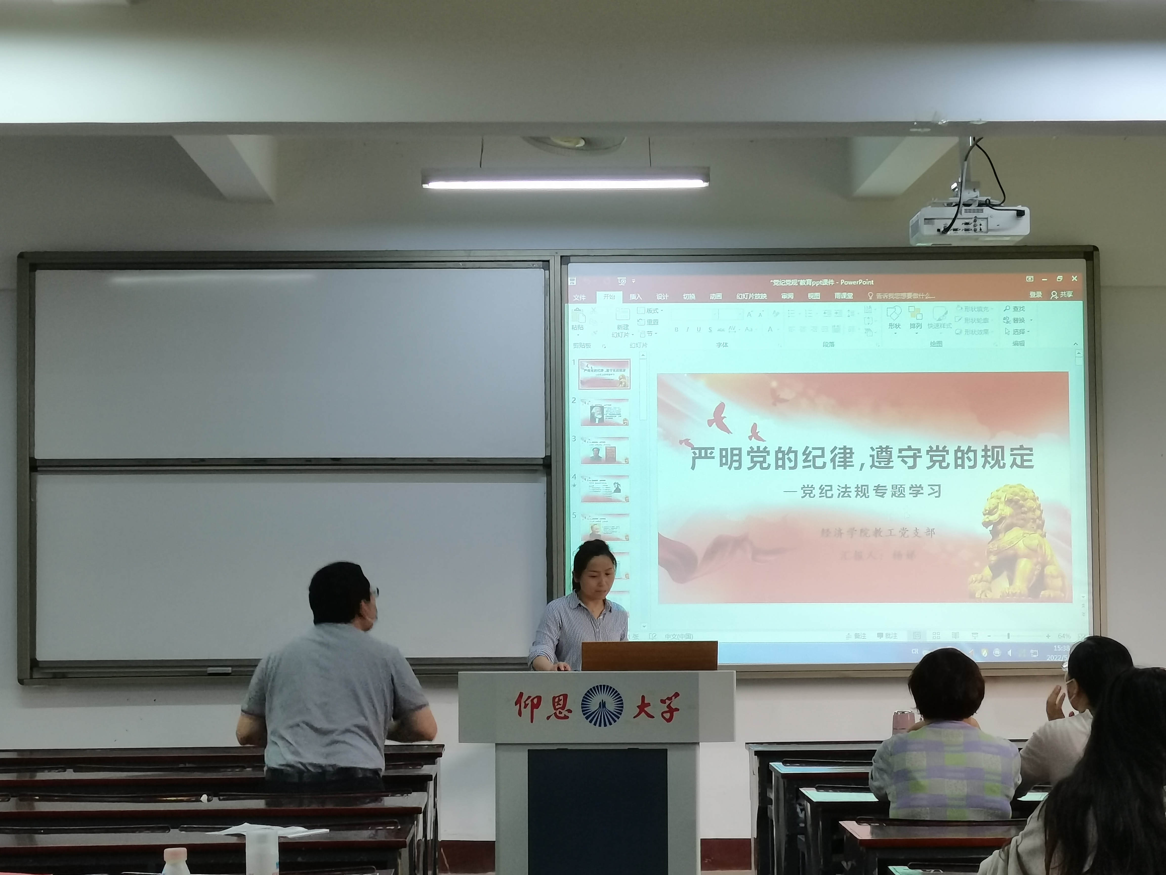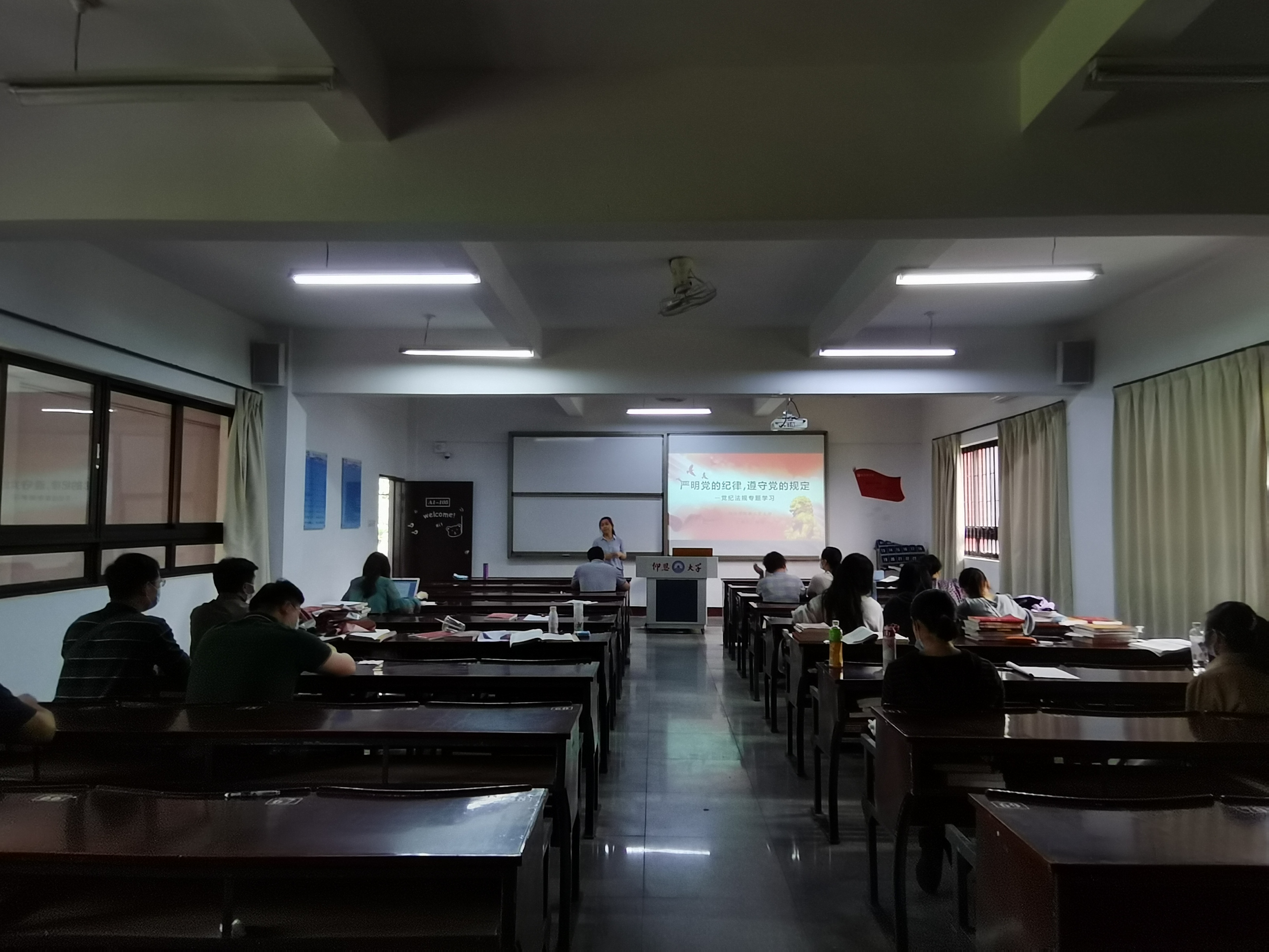 5月25日下午,米兰milan官方网站教工支部组织全体党员在仰恩楼A1-105开展党纪党规专题学习,加强教师党员政治纪律教育。此次学习会由支部书记杨娣同志主持。