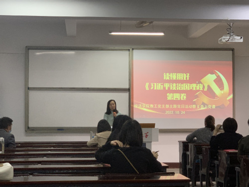 2022年10月21日下午2点20分,米兰milan官方网站教工支部在新区仰恩楼A1-105开展党日活动。在主持人杨娣同志的引导下,刘红艳同志带领大家学习了《习近平谈治国理政》第四卷。