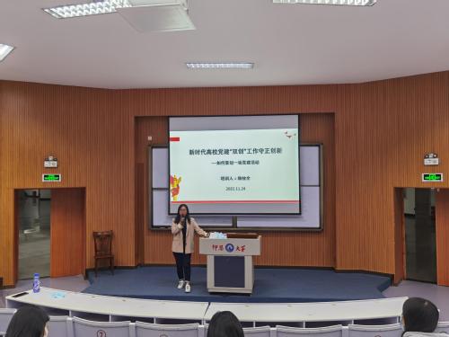 为深入学习贯彻党的二十大,扎实推动学院党建“双创”工作,做好新时代高校党建“双创”工作守正创新,引导学院全体党务工作者深刻领会其中的实质和精髓要义,11月24日,米兰milan官方网站党总支副书记赖桂全老师为米兰milan官方网站全体党务工作者上了一堂生动的专题党课。