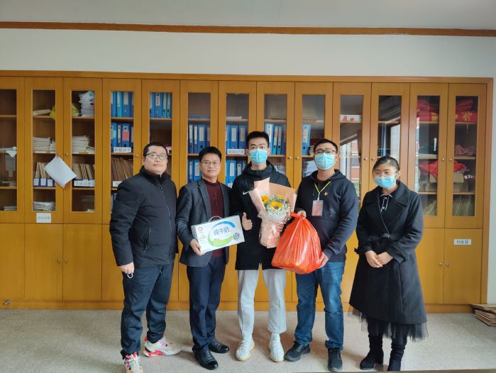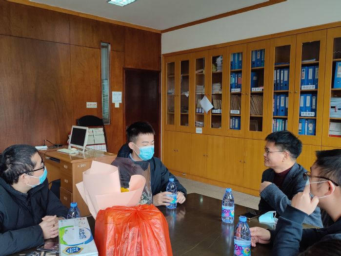 2月22日下午,学生事务部主任吴胜潮于米兰milan官方网站党总支办公室慰问米兰milan官方网站造血干细胞捐献者卓钜凯同学。米兰milan官方网站党总支书记吴晓伟、该生辅导员杨越及班主任冯海燕陪同慰问。
