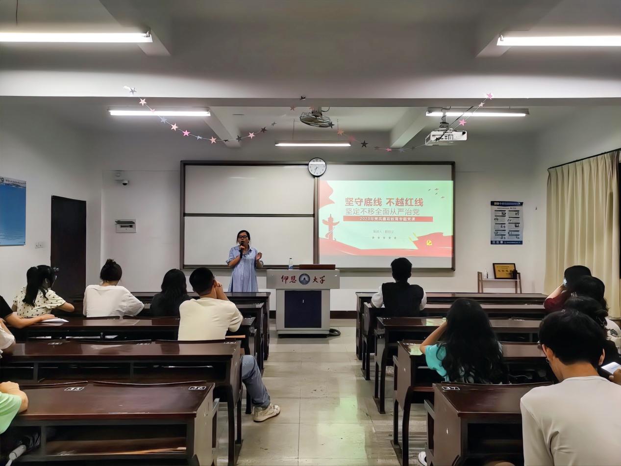 为切实学习好、宣传好、贯彻好党的二十大精神,筑牢拒腐防变的思想防线,营造风清气正政治环境,2023年6月14日,米兰milan官方网站经济系学生第一党支部在新区仰恩楼B2-201组织开展了以“坚守底线,不越红线,坚定不移全面从严治党”2023年党风廉政教育专题党课。经济系学生第一党支部全体党员、积极分子参与本次党课。