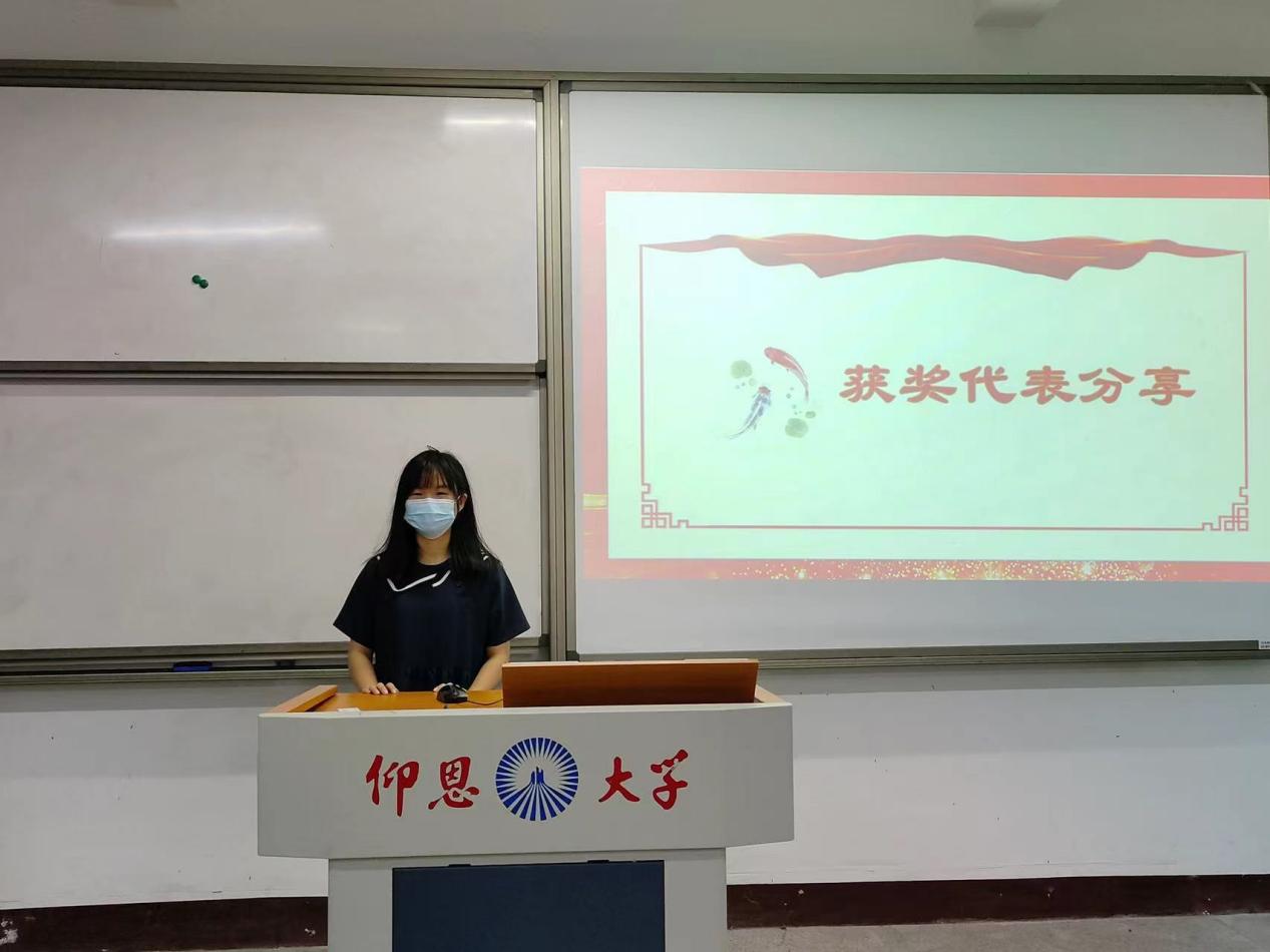 活动伊始,由主持人致开幕词并公布本次征文比赛获奖名单,由林烽老师为获奖学子颁发奖状,接着,本次征文活动一等奖获得者兼我院国家励志奖学金获得者卢淑丽同学发表自己的感言,并表示自己定不负老师和国家的期望,树立远大志向与理想,回报学校和社会。最后,林烽老师指出:希望我院学子都能够以所有获奖同学为榜样,培养克服困难的能力,学会感恩他人、感恩社会,志存高远,脚踏实地;感恩青春,砥砺前行!