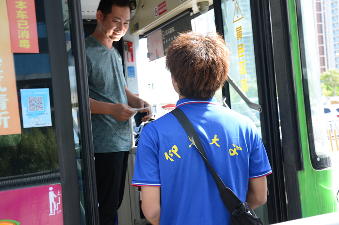 实践小队从大本营骑着共享单车出发,路上的“热浪”让每个人汗流浃背。在公交车站,首先映入眼帘的是一位环卫工人,他顶着烈日在认真打扫街道。实践小队向前为他送上了第一封感谢信并对其进行了采访。环卫工大叔说道:每一份工作都是平等的,辛苦与否都一样,没有高低贵贱之分。每次将街道打扫的整洁干净,内心油然而生一种自豪感,这是金钱不可衡量的。人生在世不求大富大贵,只求活得有意义。之后,实践队遇到了一位在车上埋头干饭的公交车师傅,他正大口大口的扒着饭。吃完饭之后,师傅笑着对实践队员们表示:这样吃饭是常态,他们必须做到准时准点,这样才能保障市民的顺利出行。