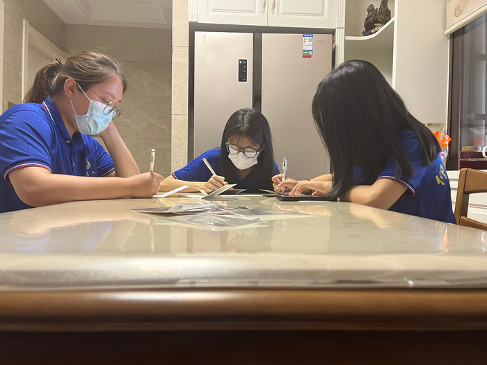 图1 队员们正在给社会工作者写感谢信