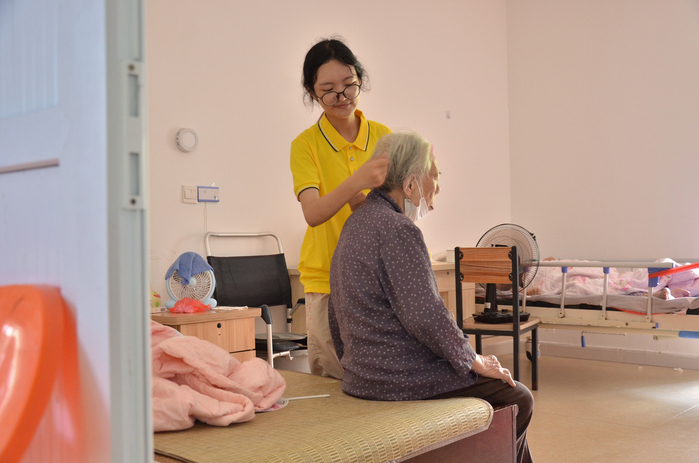 有的队员则陪着老人下楼散步,给他们按摩捶背和剪指甲,让老人们感受到大家的温暖和爱意,大家也从每位可爱老人脸上的笑脸感受到了爱的力量。实践队员们表示到,看到老人脸上的笑脸,就是最大的幸福。最后,迦歌养老院许培兵院长与实践队队员进行交谈,他以朴实的语言、真挚的感情讲述着自身工作经历和体会,教育实践队员们要学会为人处事的基本道理。