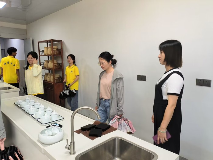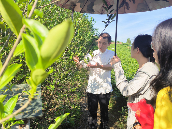随后,实践队员同刘开云大师品茶,聆听非遗传承人讲白茶文化。品鉴完白茶,实践队同刘开云大师前往有机白茶茶园,听传承人介绍有机白茶培育过程及优势与劣势,让实践队员切身感受非遗文化传承的不易,更加坚定弘扬非物质文化遗产的决心。