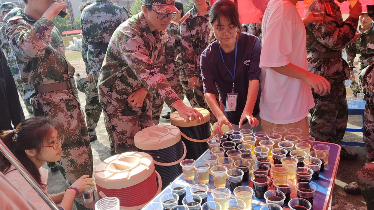 图1 团委干部递凉茶慰新生