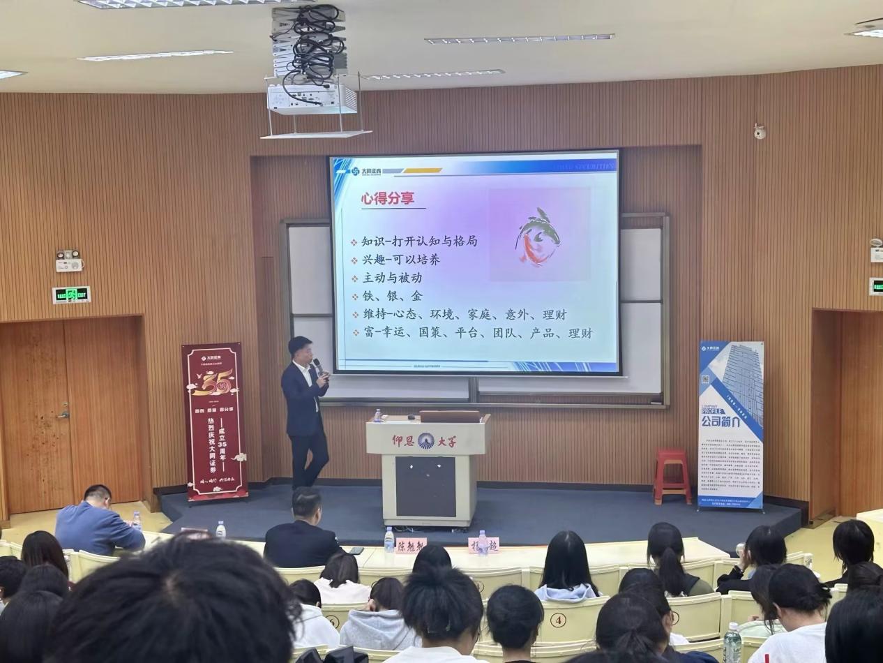 会上,主讲人从就业市场现状与趋势、求职技巧与策略、从业心得分享三个方面向同学们分享了当下就业形势及其机遇和挑战,使同学们进一步了解了证券行业的发展前景及相关证券岗位信息。