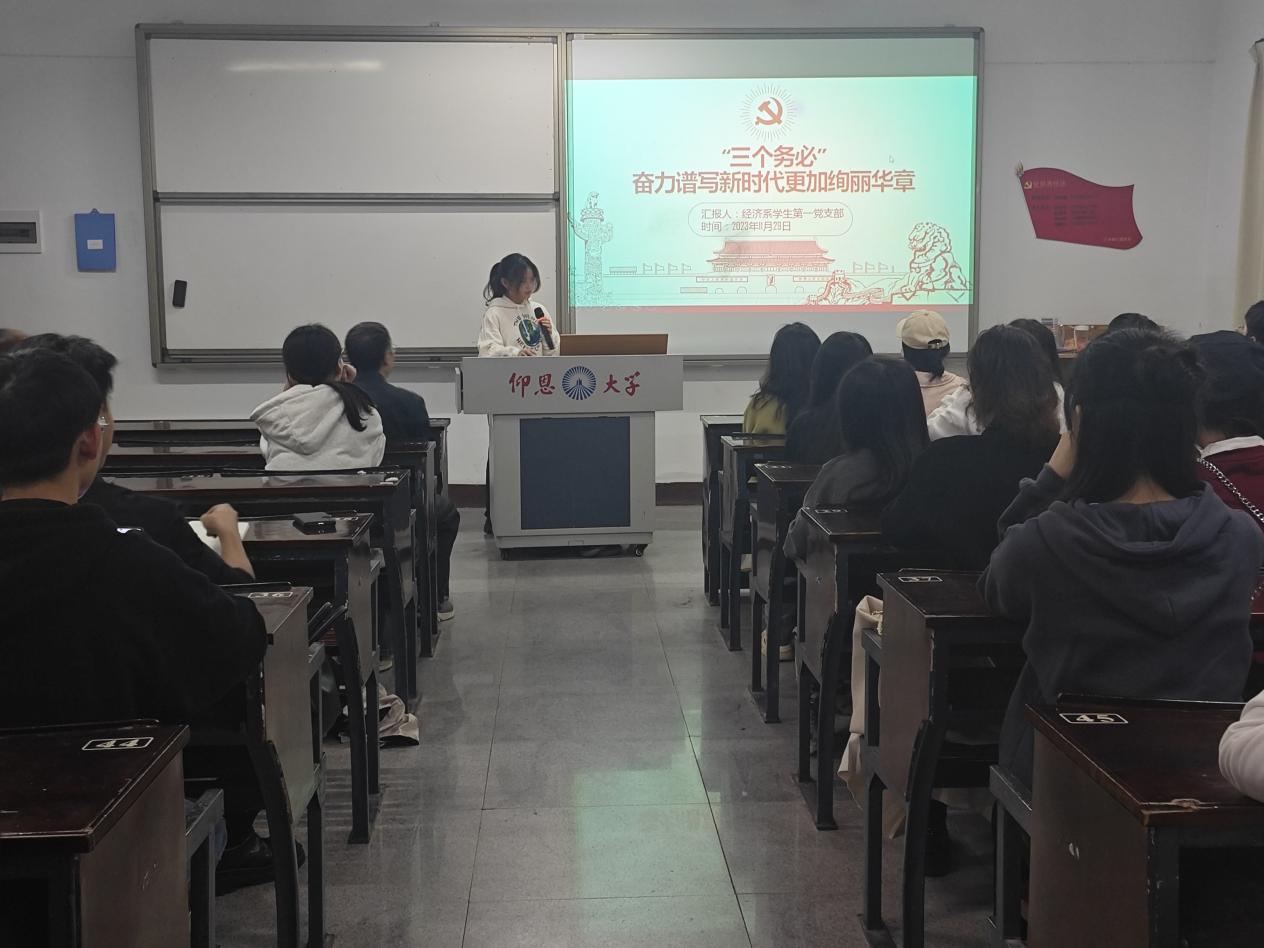 为增强历史自觉,保持赶考清醒和坚定,推动新时代中国特色社会主义事业不断前进。2023年11月29日,米兰milan官方网站经济系学生第一党支部在新区仰恩楼A1-101组织开展了学习二十大报告中的新观点、新论断、新思想学习会。经济系学生第一党支部全体党员、积极分子参与本次会议。
