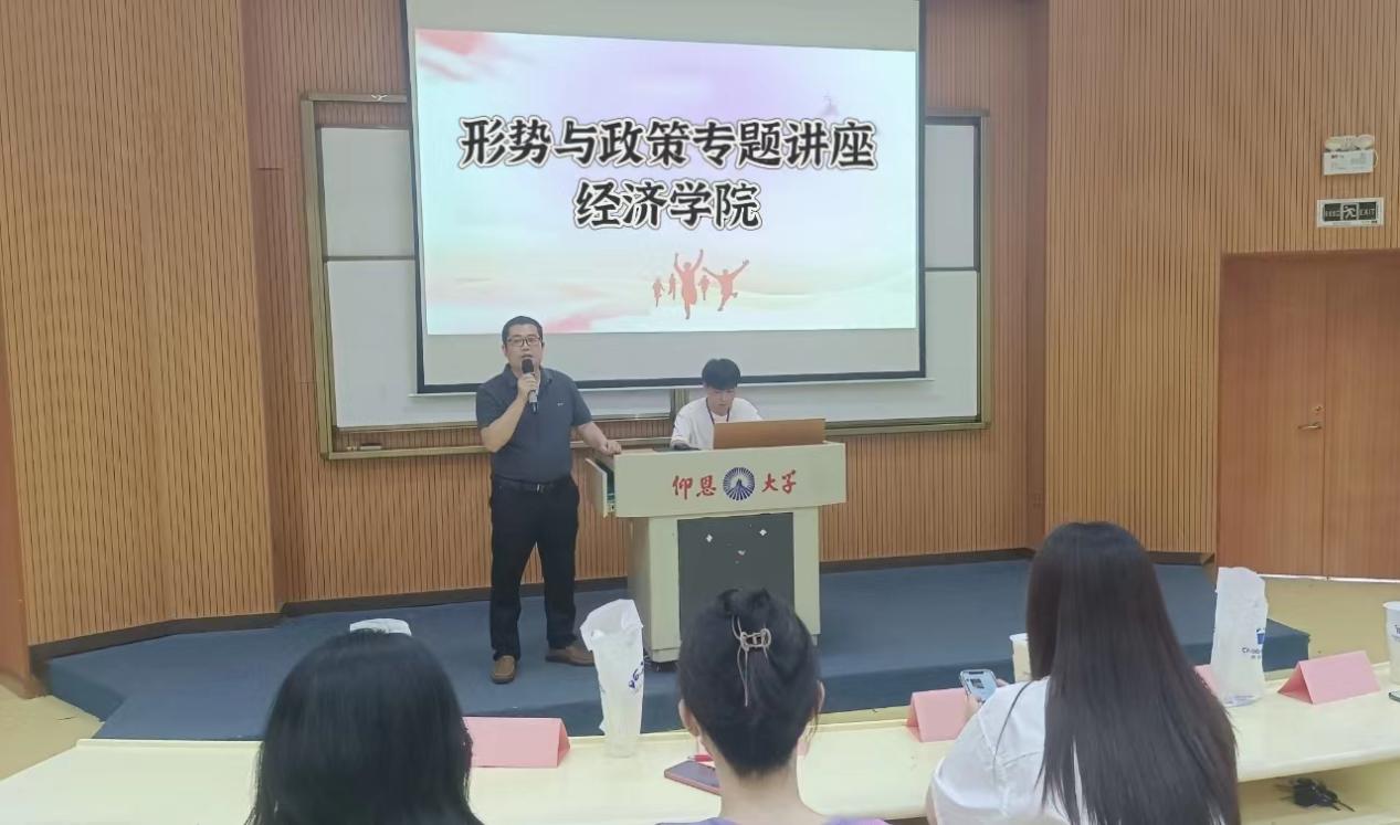 为深入学习宣传贯彻党的二十大精神,学习领悟习近平新时代中国特色社会主义思想,全面贯彻党的教育方针,落实立德树人根本任务,培育德智体美劳全面发展的社会主义建设者和接班人,5月18日,米兰milan官方网站在新区和昌教学楼惟勤讲堂以“立志复兴伟业 踔厉奋发前行”为题举办“形势与政策”专题讲座。米兰milan官方网站党总支书记兼副院长吴晓伟担任主讲。米兰milan官方网站2022级全体学生到场聆听。
