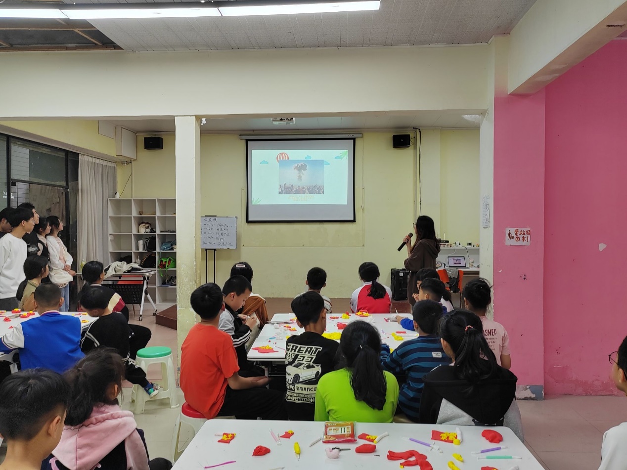 活动开场,由支部成员向小朋友介绍红色主题,采用有奖问答的方式,充分调动小朋友们的积极性。紧接着,进行手工制作和故事分享环节,志愿者们协助小朋友们制作小国旗和党徽,随后支部成员讲述经典的红色故事,既增强了小朋友的动手能力,又加深了小朋友对红色文化的了解,弘扬优秀红色精神。