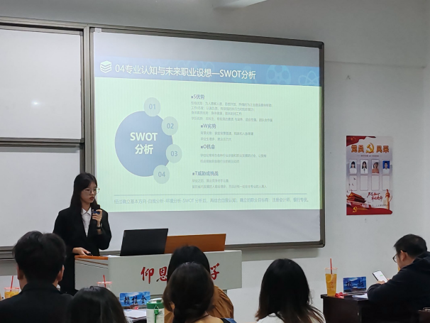 比赛过程中,11位选手依次上台展示了自己精心制作的ppt,并且对自己未来职业规划进行了深入的分析。他们充分展现了自我,以自信的姿态向现场的观众们展示自己职业规划。评委老师们也对每位同学的职业规划从各个方面进行了详细的指导和建议。