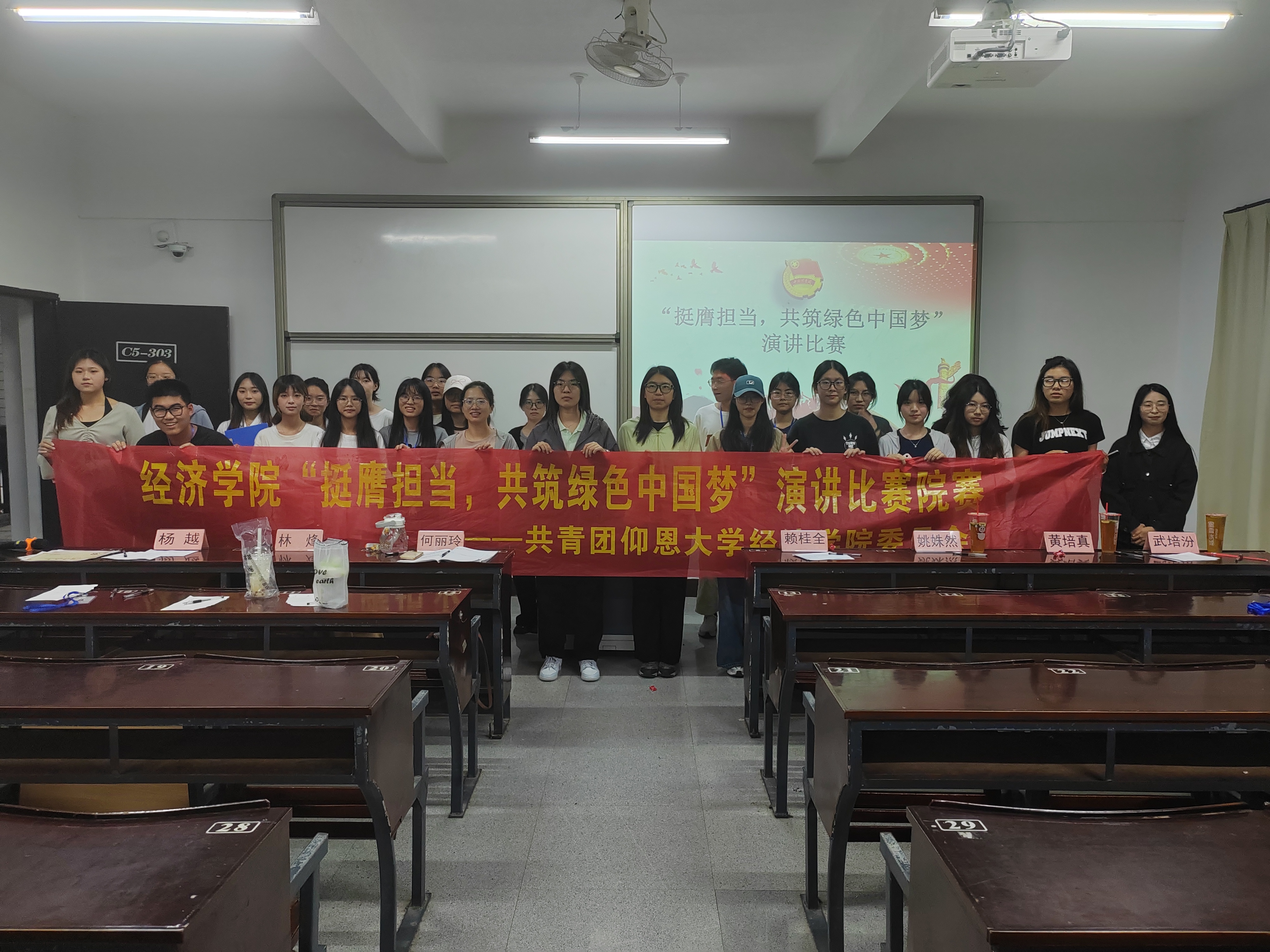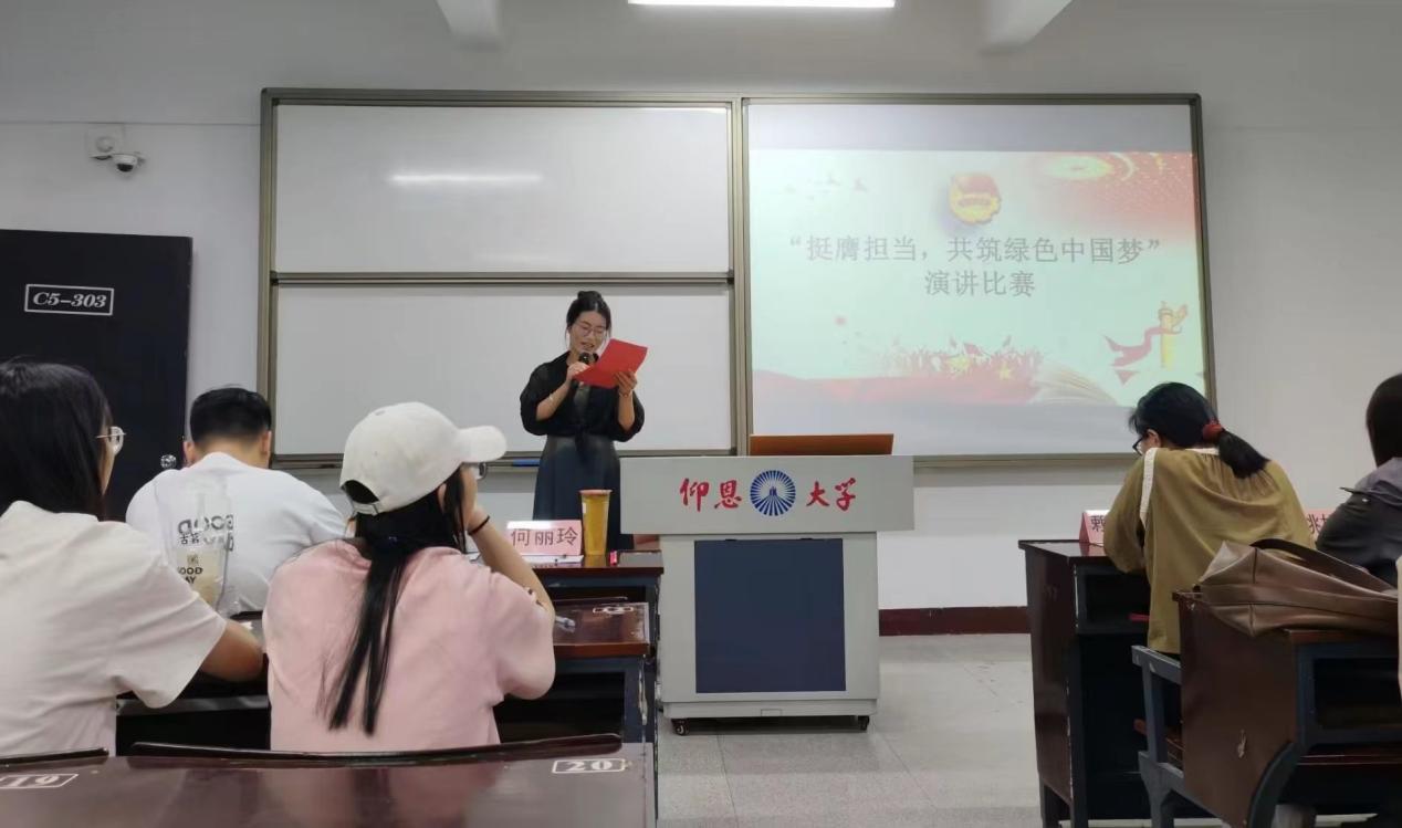 为了响应中国绿色发展理念,号召同学们共建绿色中国梦。2024年5月16日晚上19: 30,米兰milan官方网站团委在仰恩楼C1-303开展“挺鹰担当,共筑绿色中国梦”演讲比赛。由米兰milan官方网站辅导员老师作为评委出席本次比赛,部分经院学子到场观看。