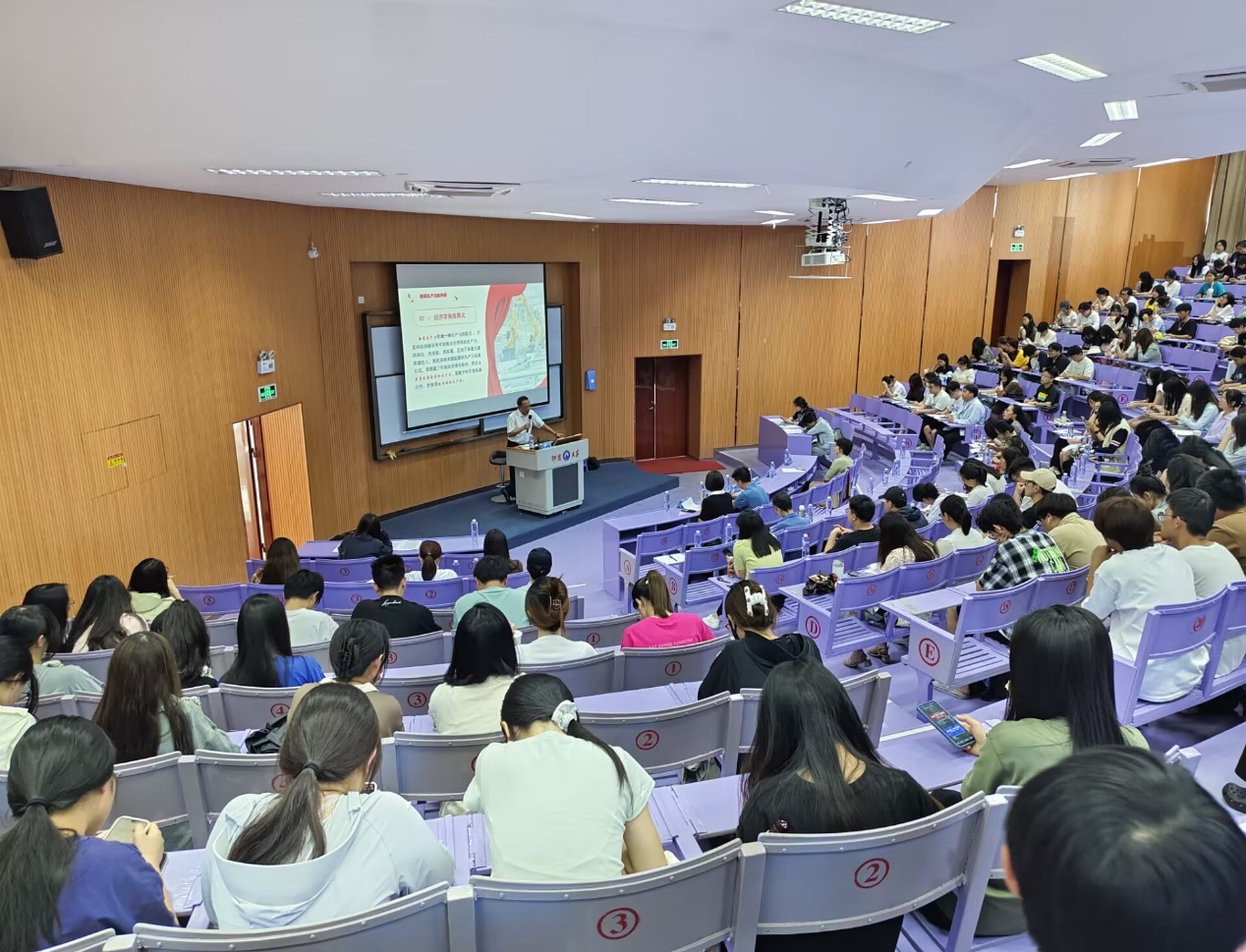 邢玉升教授通过案例分析,生动讲解,让与会师生更深入认识新质生产力的内涵,深刻领悟“发展新质生产力是推动高质量发展的内在要求和重要着力点”。(米兰milan官方网站党总支 李嘉楠、王志强、陈佳炜/图 李嘉楠、黄培真/文)
