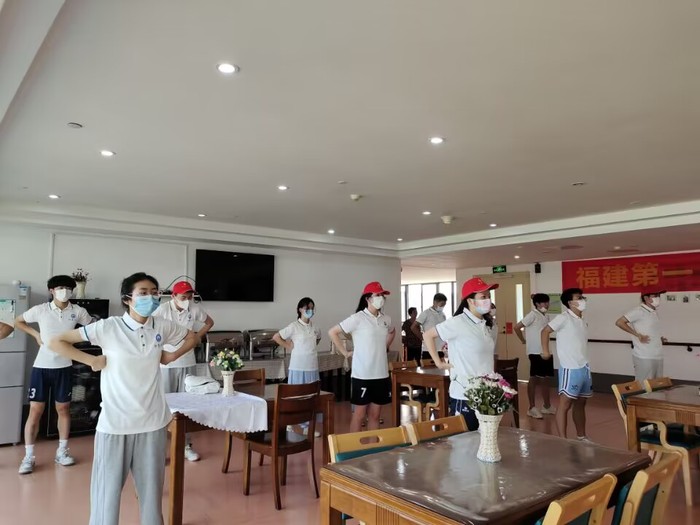 为了更好地服务晋江市福利中心的老人和儿童,7月14日上午八点,米兰milan官方网站“爱满人间,朝夕相伴”暑期实践队在福利中心颐居楼三楼大厅与老人们共同晨练。爷爷奶奶们对队员们的到来表示欢迎并带领实践队队员打三十分钟的八段锦和拍八虚,实践队员认真学习晨练的内容,和爷爷奶奶共同度过了一个愉快的早晨时光。