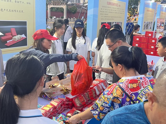 此次活动在漳州古城内设立售卖白水贡糖的摊位,不仅展示了白水贡糖的传统制作技艺,更让游客们有机会亲自品尝到这一经典美食。摊位上,各式各样的白水贡糖琳琅满目,从传统的原味到创新的抹茶味、黑芝麻味,满足了不同消费者的口味需求。实践队成员协助金旺旺食品有限公司摊位负责人进行相关产品的售卖。对于他们来说,从招呼顾客到介绍产品,每一个环节都充满了挑战和乐趣。他们纷纷表示,这是他们第一次尝试摆摊售卖,虽然过程中遇到了不少困难,但看到顾客们满意的笑容,所有的努力都变得值得。