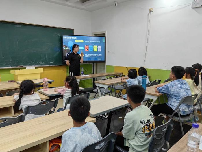在实践队员的讲解下,小朋友们学习了有关“垃圾分类”的相关知识,了解到了“垃圾分类”的基本概念,实践队员还通过播放动画片的形式,进一步阐述了“垃圾分类的”的意义,增强了小朋友们的环保意识。此外,实践队员还传授了“垃圾分类”的方法,帮助小朋友们正确地对垃圾进行分类,并要求小朋友们积极参与垃圾分类行动,共同为建设美丽家园贡献力量。